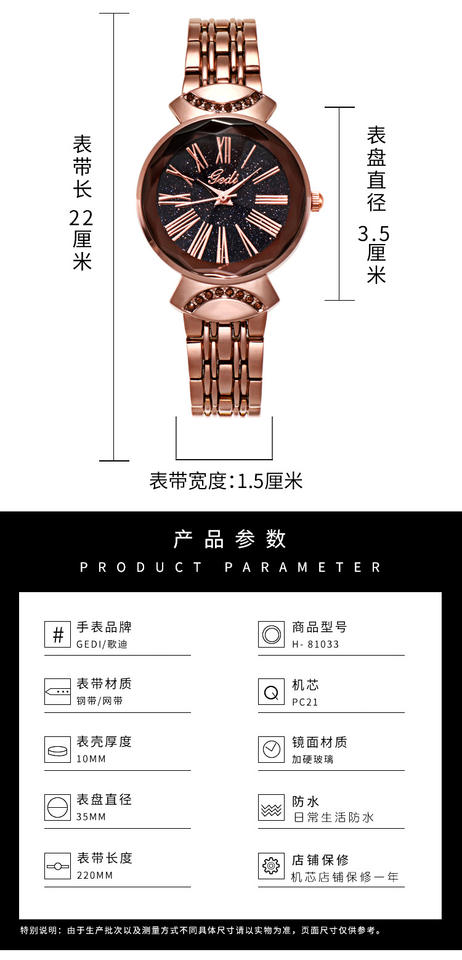 Reloj de Mujer Impermeable con Superficie de Cielo Estrellado, Estilo Vintage, Números Romanos, Oro Rosa, Venta al por Mayor.