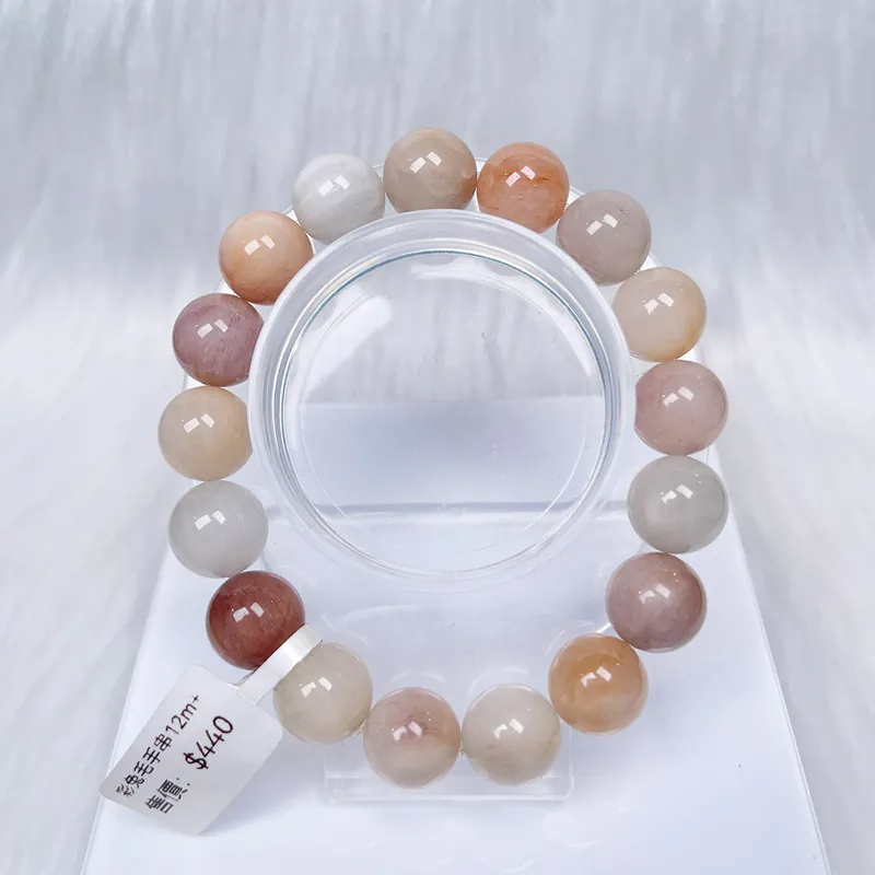 Pulsera de piel de conejo de color de cuentas redondas lisas de cuarzo turbio de gran venta 12m + hombres y mujeres