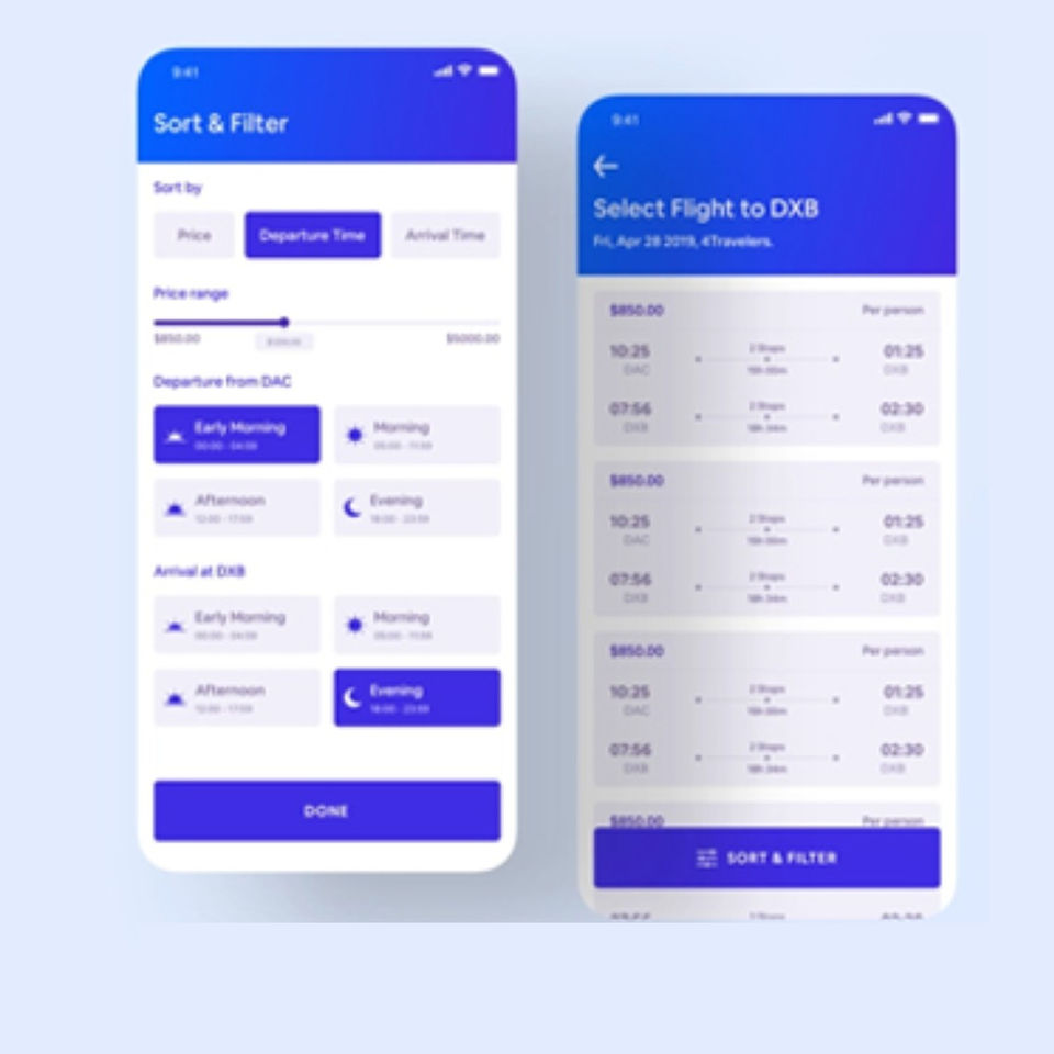 Aplicación móvil de reserva de hoteles y vuelos con múltiples características y diseño disponible Desarrollo de aplicaciones móviles (Android / iOS)
