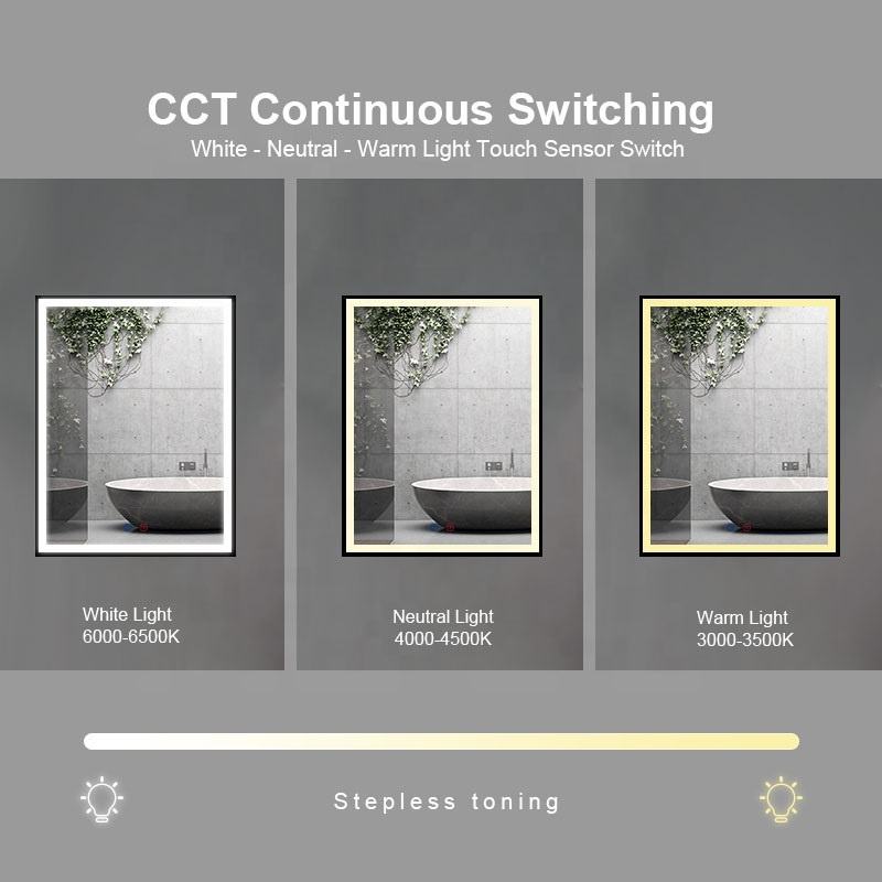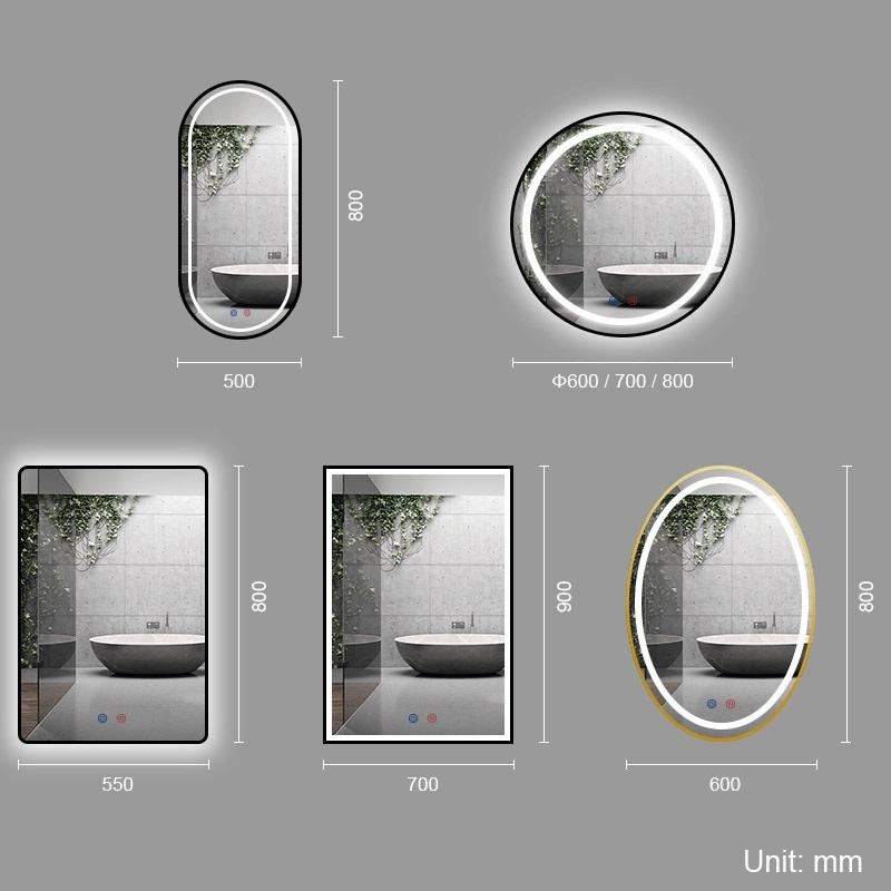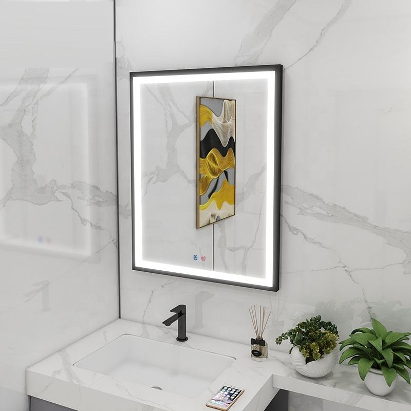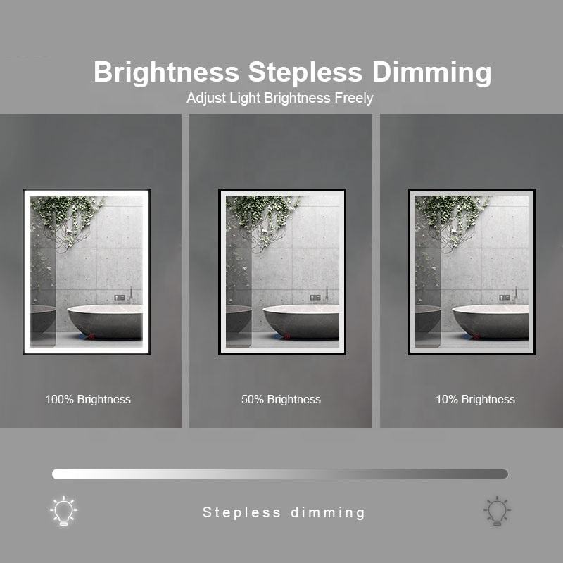 Espejos de baño para hotel, pantalla de humedad y temperatura, wifi, espejo de baño, luz led