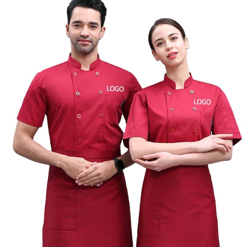 Ropa de Trabajo para Chef de Hotel, Uniforme de Verano de Manga Corta para Hombre y Mujer, para Catering, Panadería, Pastelería, Cocina, con Logotipo Bordado