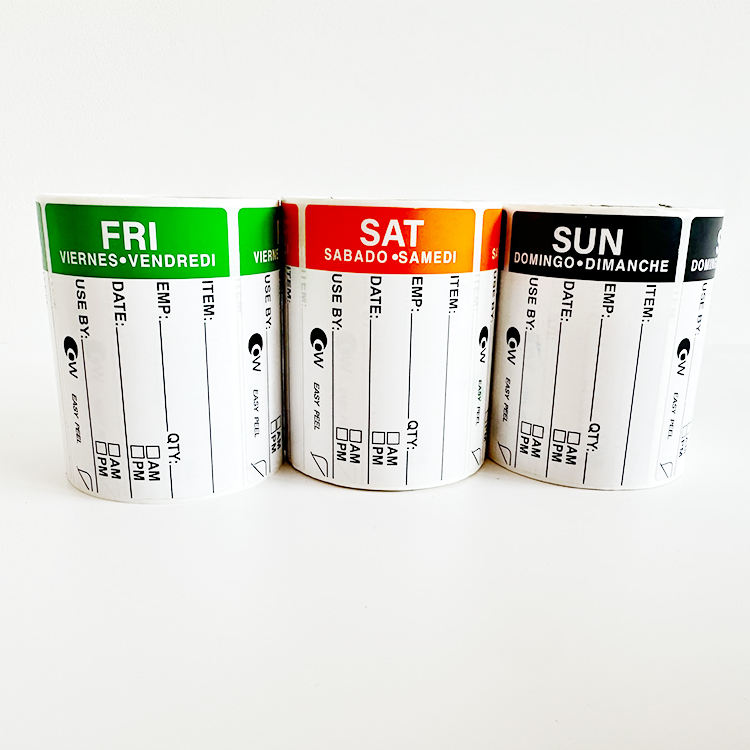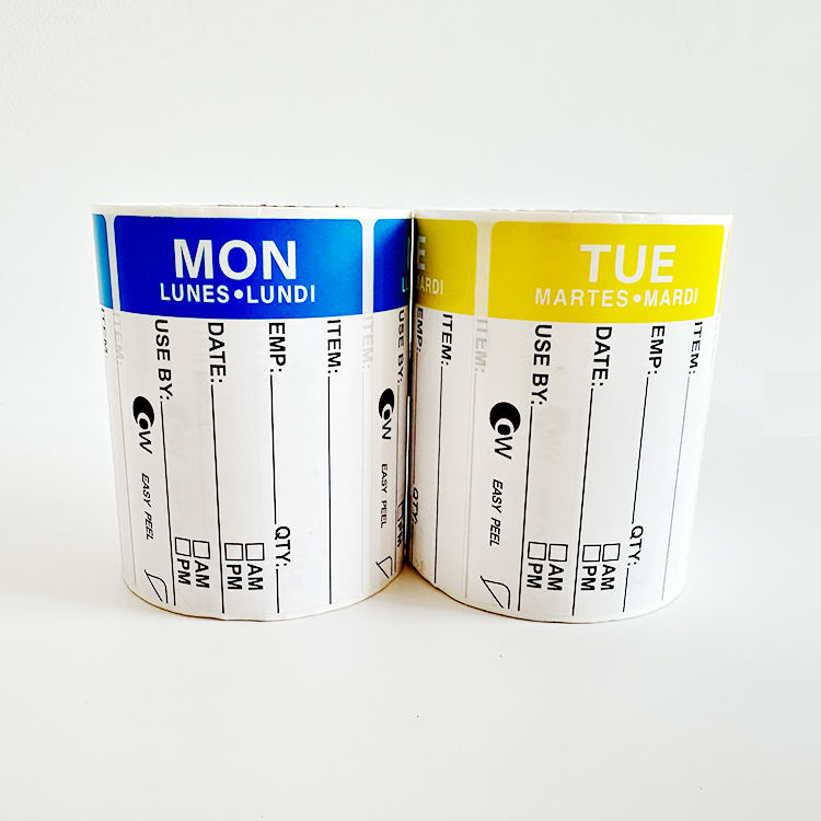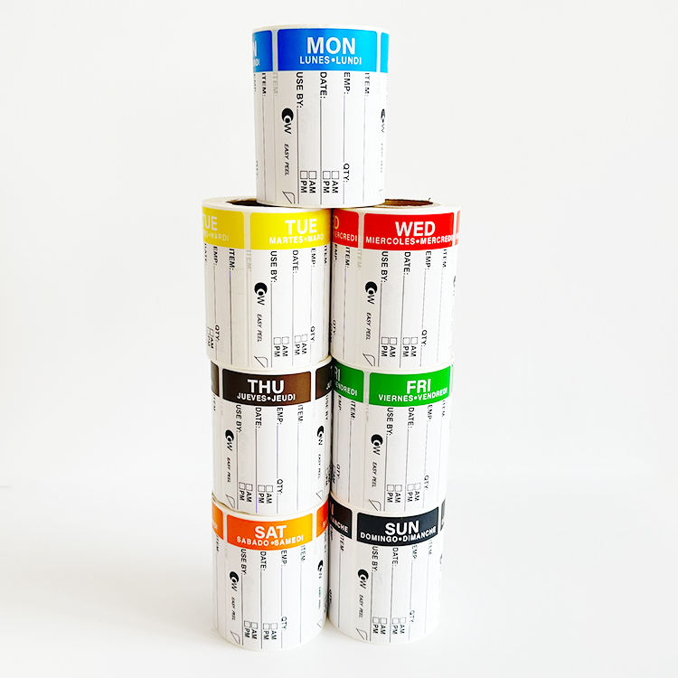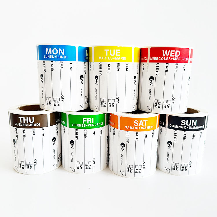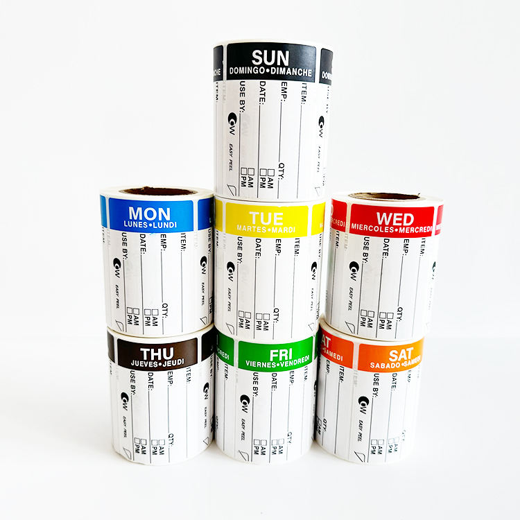 Hotel Food Management Timing Stickers 500 por rollo de lunes a domingo Acabado brillante 7PCs Label Roll Set