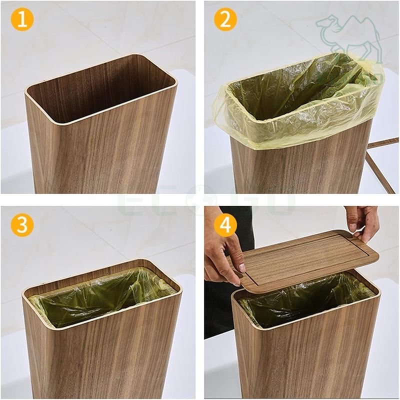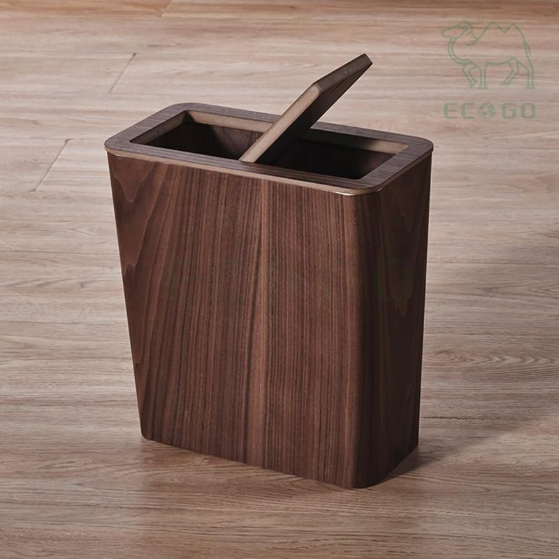 Cubo de basura de lujo de madera de nogal con tapa reversible