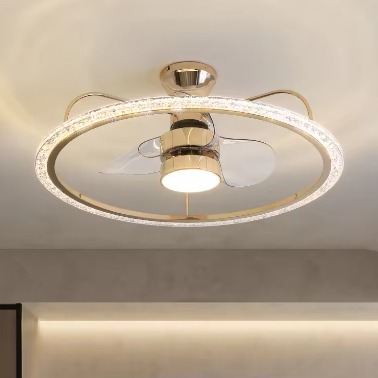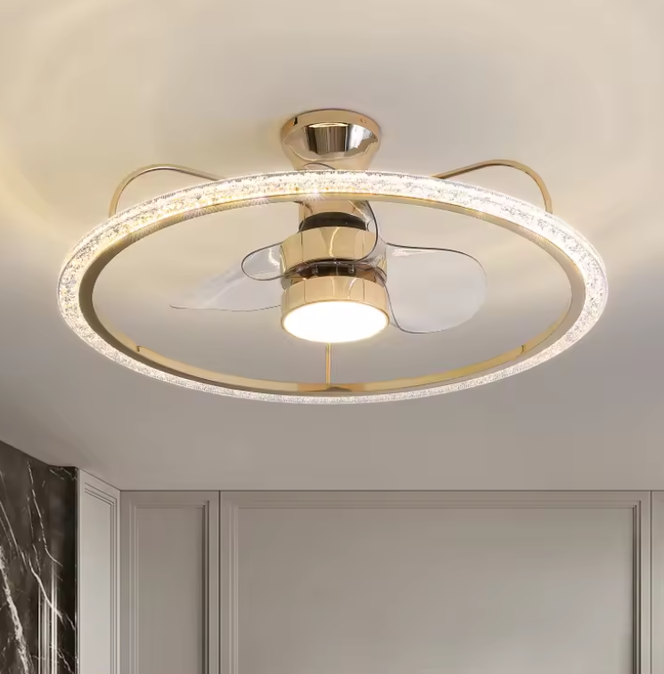 Soluciones de iluminación de servicio:Iluminación y circuitos de diseño, clear blade crystal Ceiling Fan With Led Light