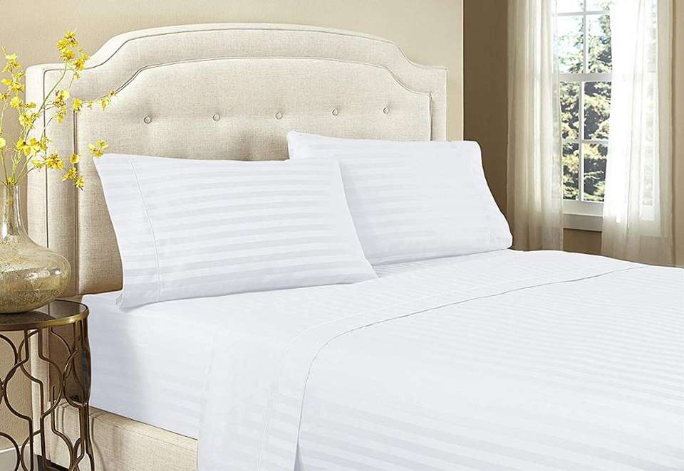Product Name:Hotel Luxury 4 Piece Dobby Damask Stripe White Bed Sheet Set
