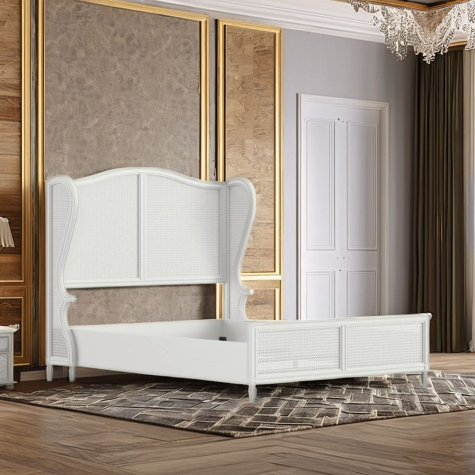 Nombre del producto:Cama de Panel de Caña Francesa, Cama de Dormitorio de Lujo Tallada en Madera Maciza.