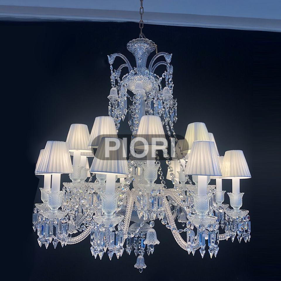 Proyecto de hotel araña de cristal K9 de lujo moderna con pantalla de tela para sala de estar decoración de boda SALA DE BUCEO