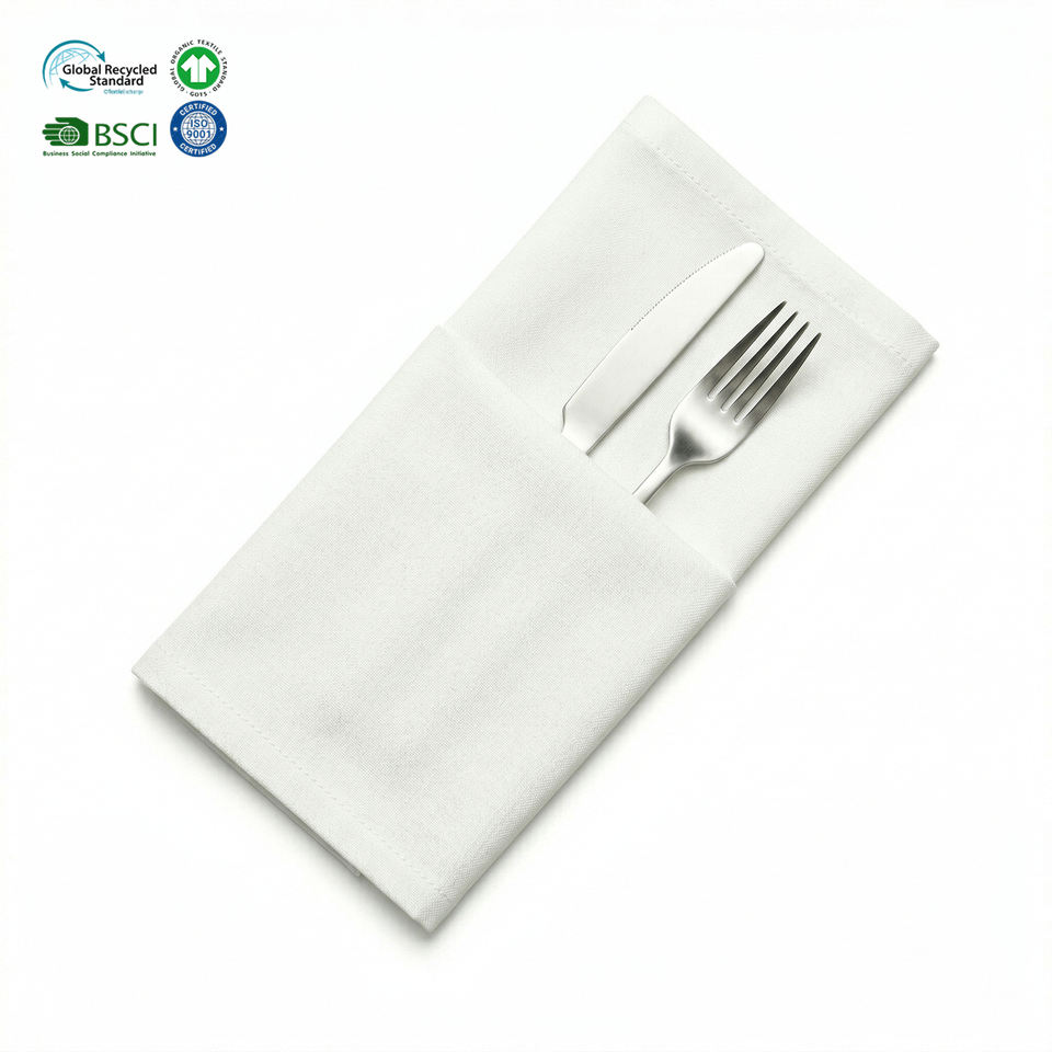 Servilletas de Cena Blancas de Calidad Hotelera al por Mayor, 18x18 Pulgadas, Mezcla de Polialgodón, con Etiqueta Personalizada para Hostelería y Bodas