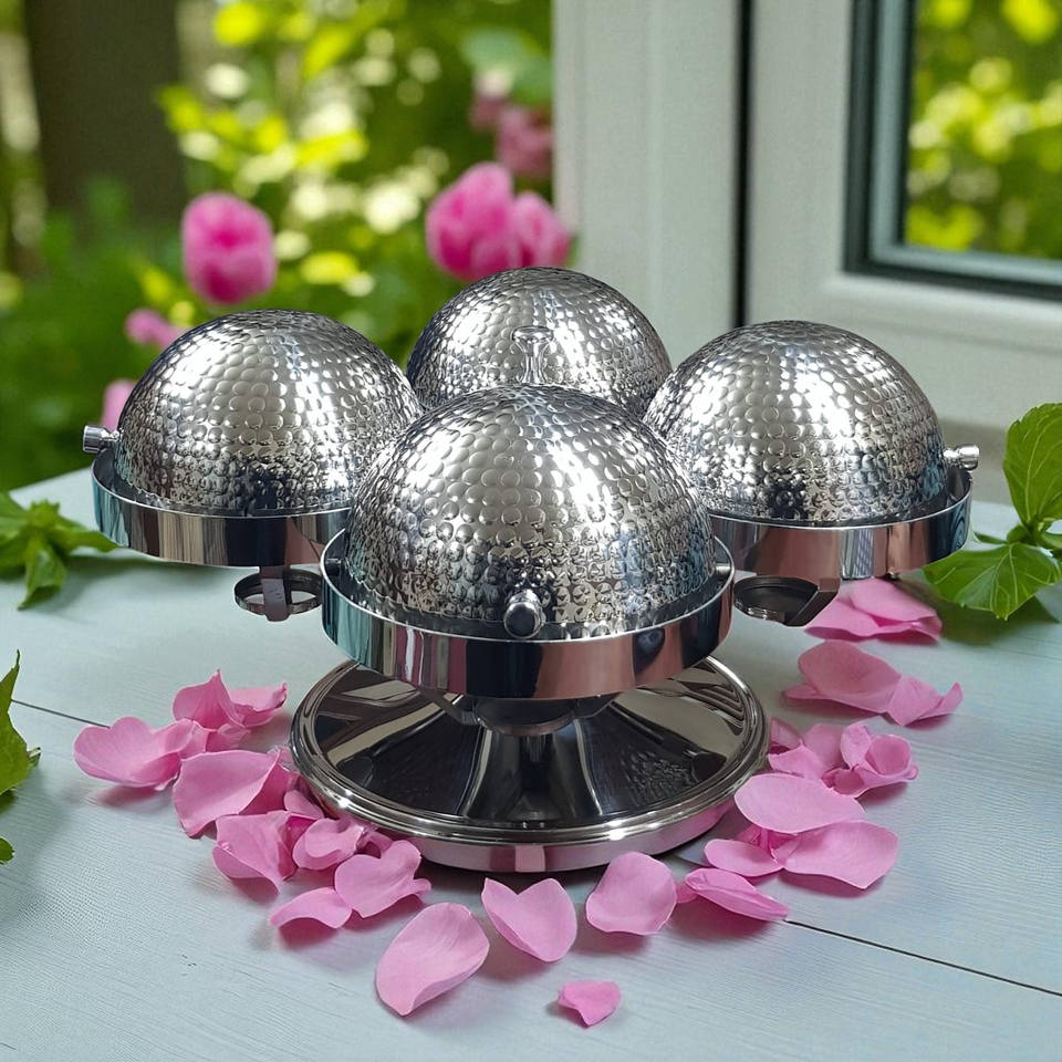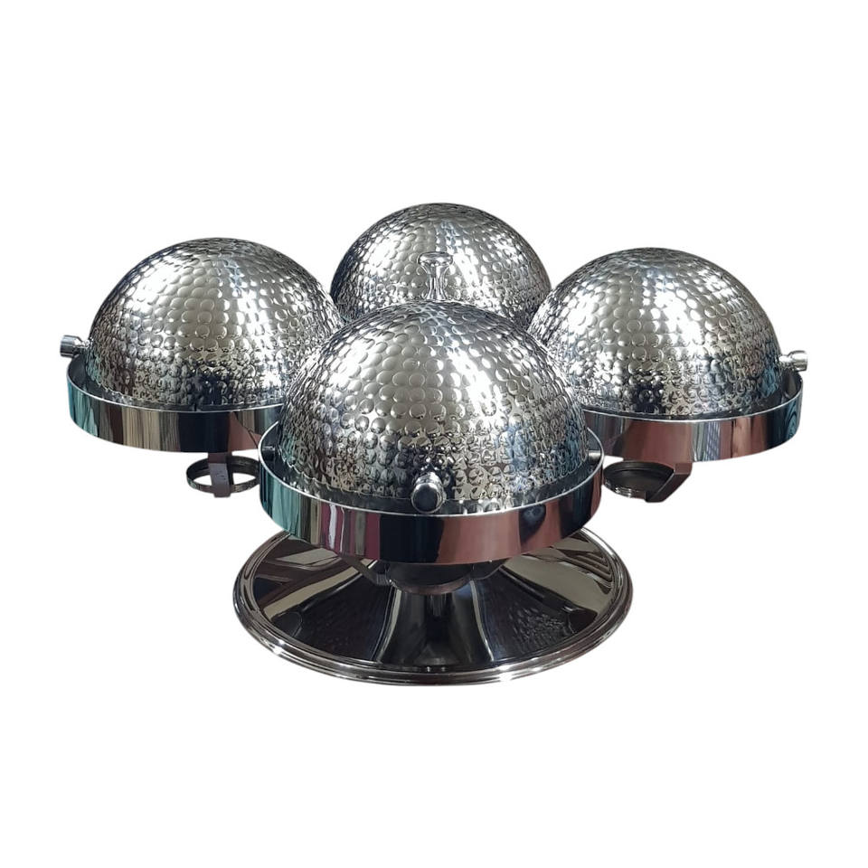 Juego de Buffet 4 en 1 con Recipiente Giratorio de Acero Inoxidable de Diseño Saudí para Catering de Restaurantes de Hoteles con Tapa Elegante