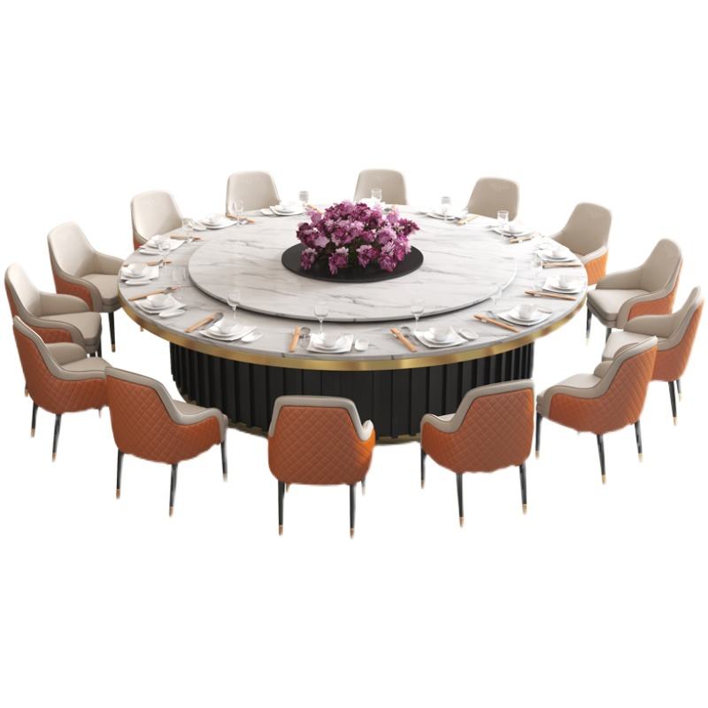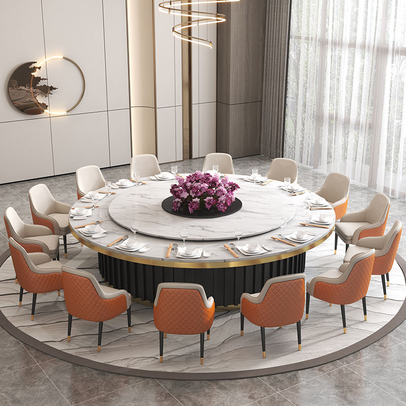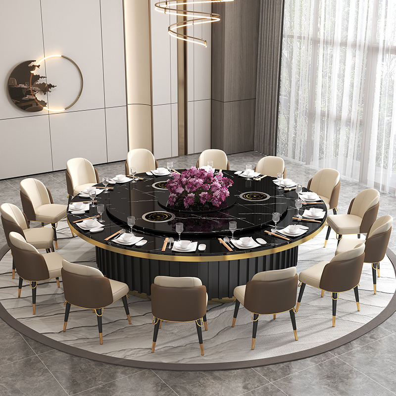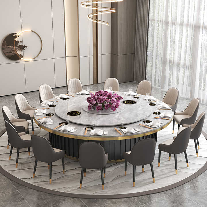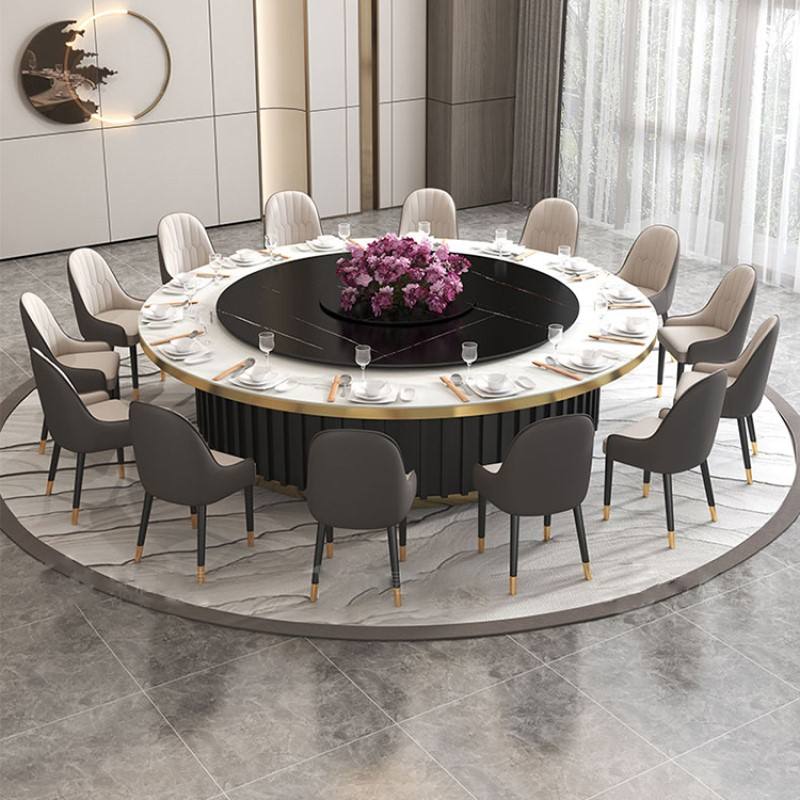 Mesa de comedor redonda para sala VIP de restaurante de hotel con tocadiscos automático mesa de comedor redonda de mármol natural italiano de lujo con Susa perezosa