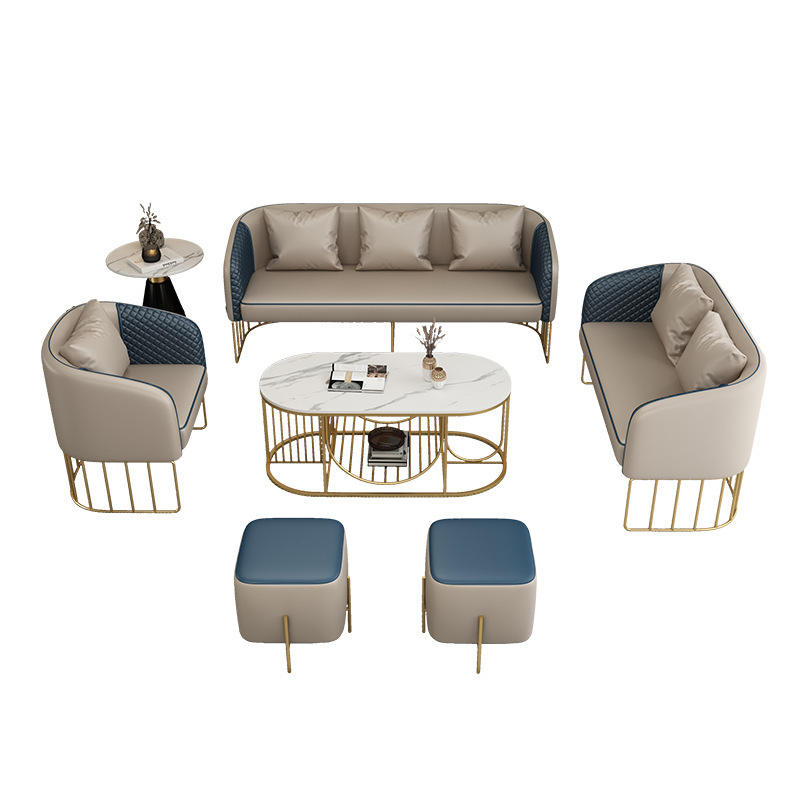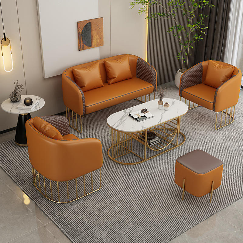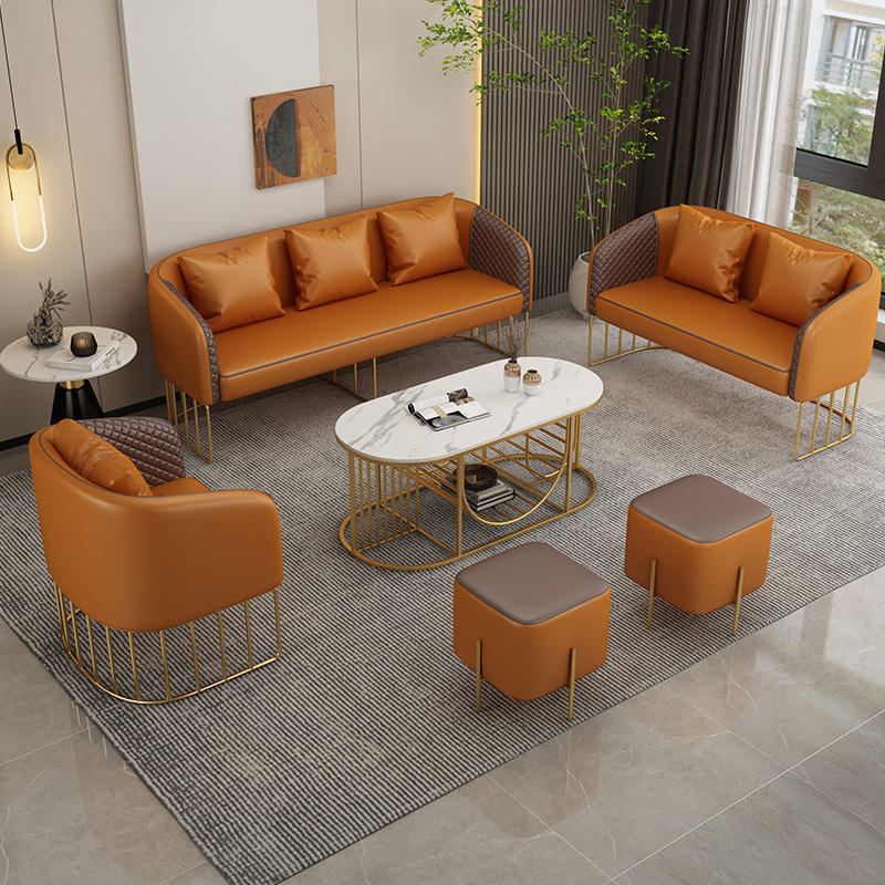 Conjunto de sofás para hotel en forma de L, de cuero repujado, duradero, para área de recepción y cafetería