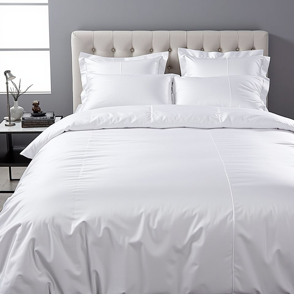 Funda de edredón de polialgodón de estilo hotelero de 210cm x 230cm con borde de dobladillo francés a rayas satinadas y patrón liso para un aspecto limpio y sofisticado