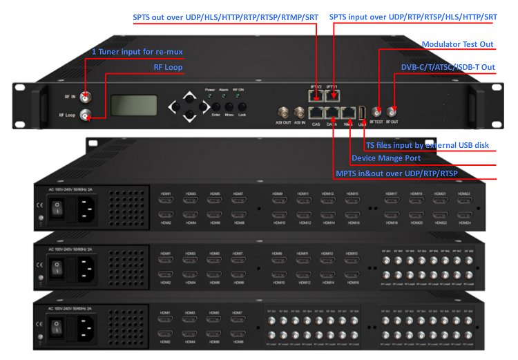 8/16/24HD, or plus DVB-S2/S2X/ C/T/T2/ISDB-T tuner, asi, TS file