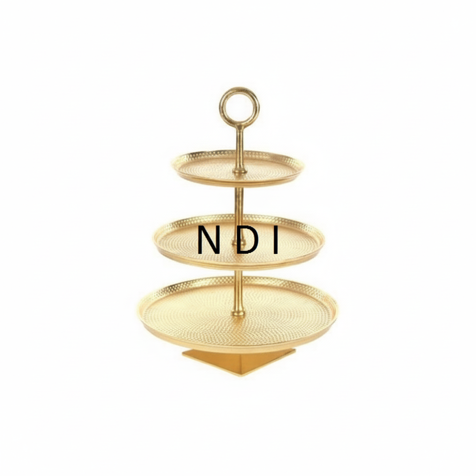 Decoración de Mesa para Hotel, Soporte para Servir Pasteles, Chapado en Oro, Aluminio Hecho a Mano, Ecológico, Plegable, de 3 Niveles, Apto para Lavavajillas