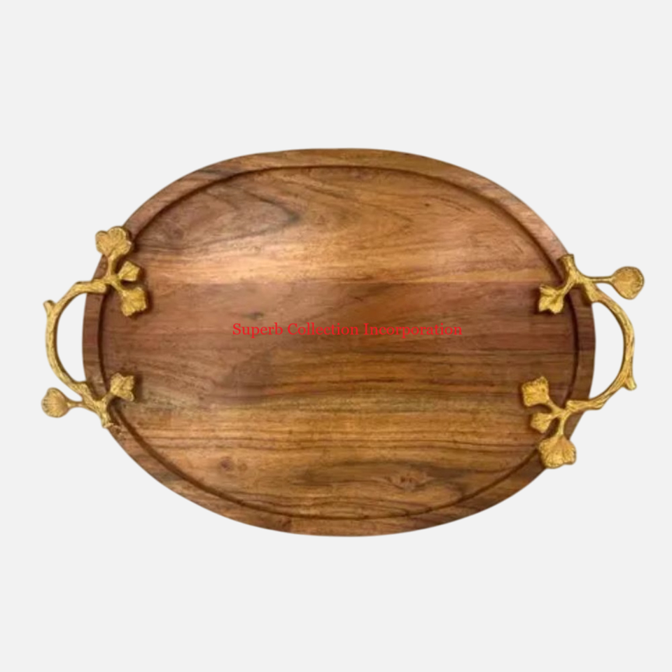 Accesorio de artículos de hotel perfecto para servir aperitivos bandeja de madera moderna con galletas con mango de acento de pájaro floral dorado a buen precio