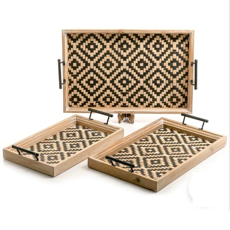 Bandejas para servir de metal con forma de rectángulo para restaurantes y hoteles, Bandejas para servir de metal con asas, calidad de alto estándar