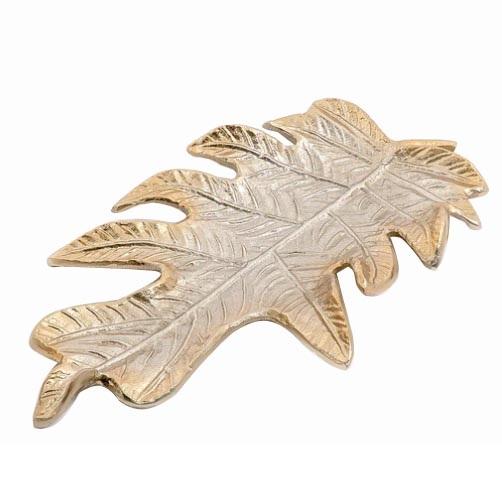 Bandeja DE SERVICIO DE Metal con acabado antiguo en forma de hoja, decoración de mesa para fiesta de boda, bandeja de servicio de Metal hecha a mano