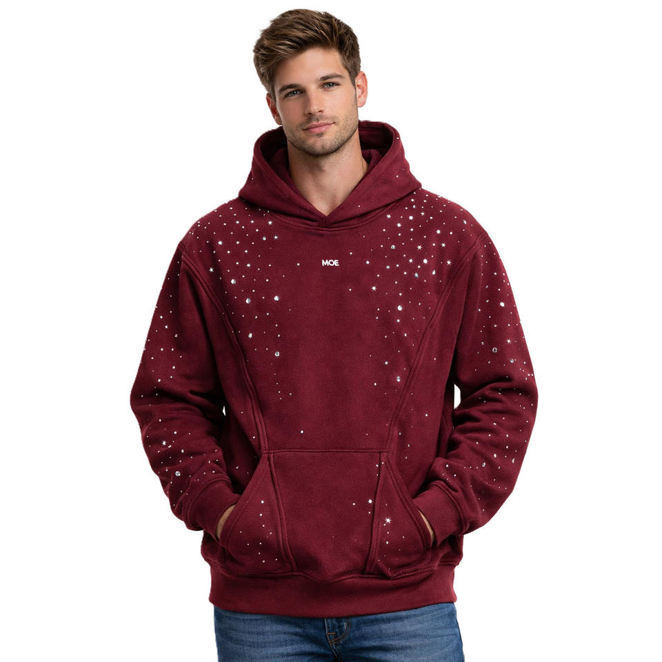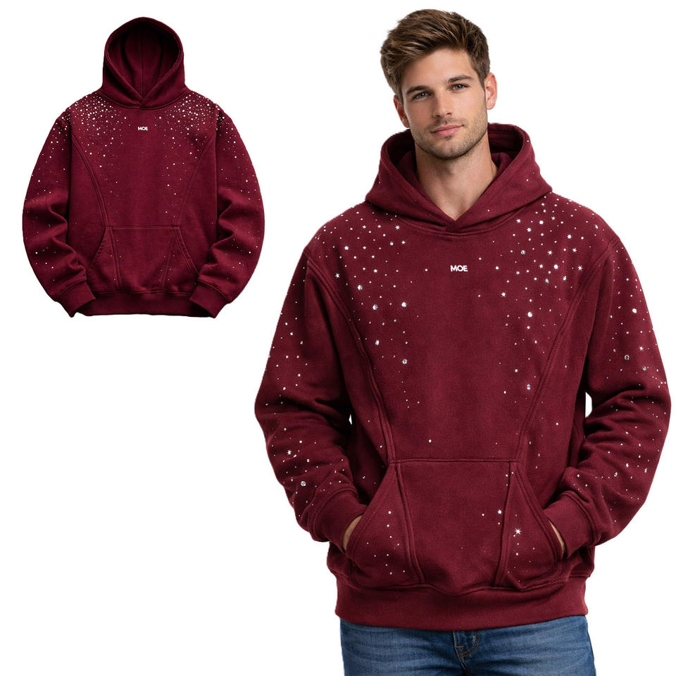 Sudadera con capucha de algodón grueso con pedrería Hotfix para hombre, estilo oversize, para streetwear, marca privada