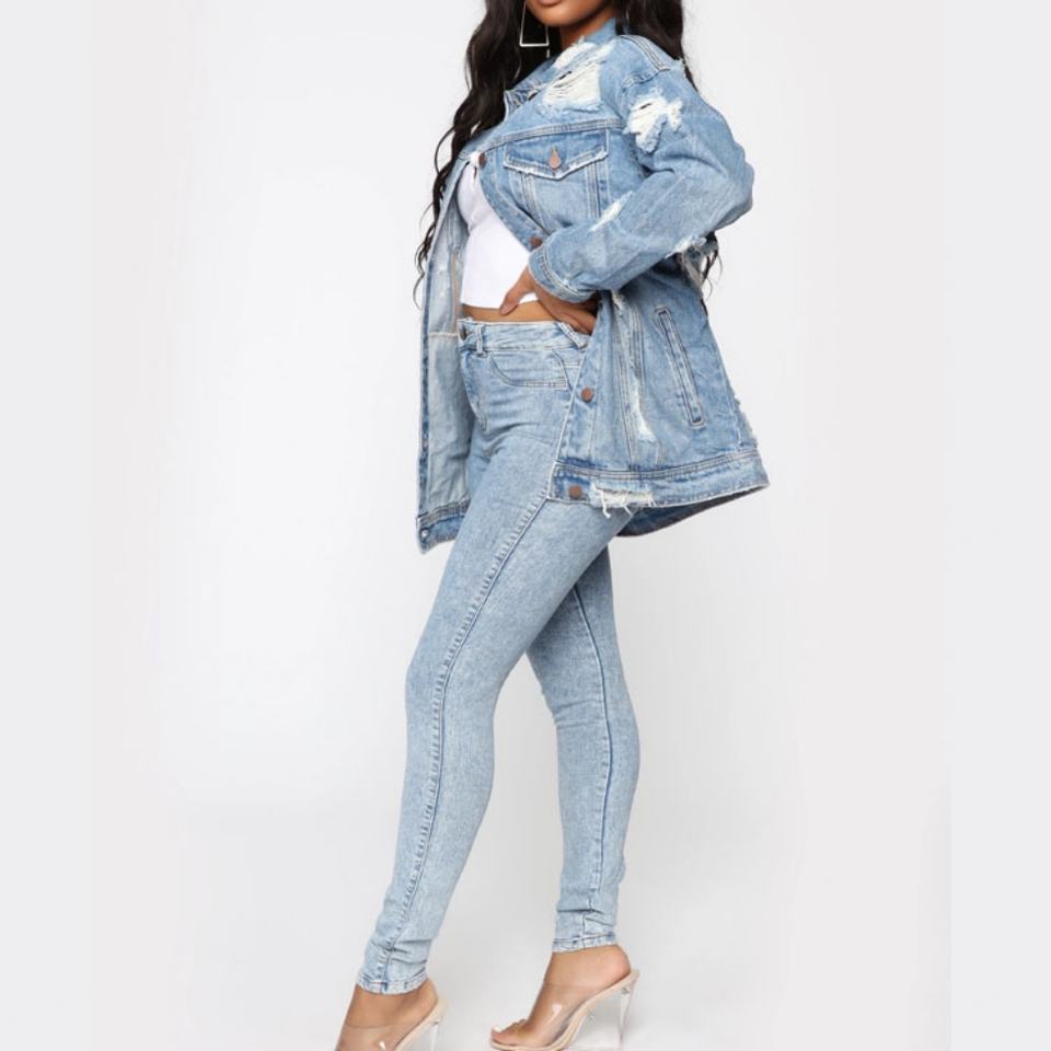 Chaquetas Vaqueras Extra Grandes para Mujer, Diseño Nuevo, Desgastadas, Color Azul, en Oferta