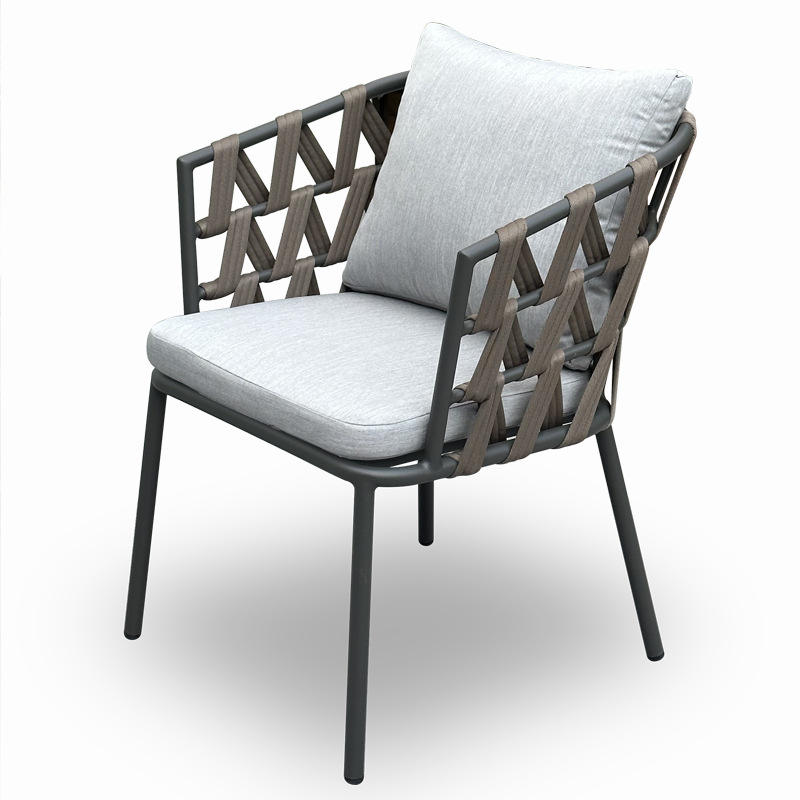 Venta caliente moderna ligera cuerda tejida de ratán al aire libre apilable al por mayor Marco de aleación de aluminio Patio jardín Silla de comedor