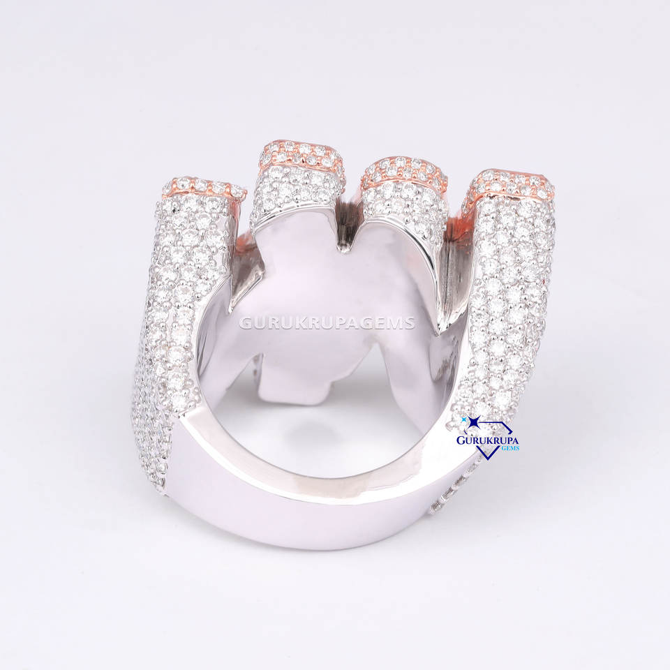 Anillo de Bodas de diamantes cultivados en laboratorio de corte redondo y Baguette de oro rosa de 14 quilates para hombres con certificación IGI