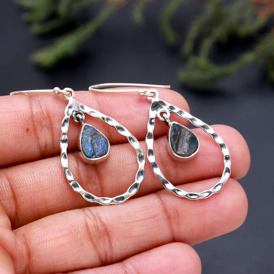 Pendientes de Plata de Ley 925 con Labradorita Natural en Corte Pera, Diseño Más Reciente y Popular, Joyería Fina Hecha a Mano