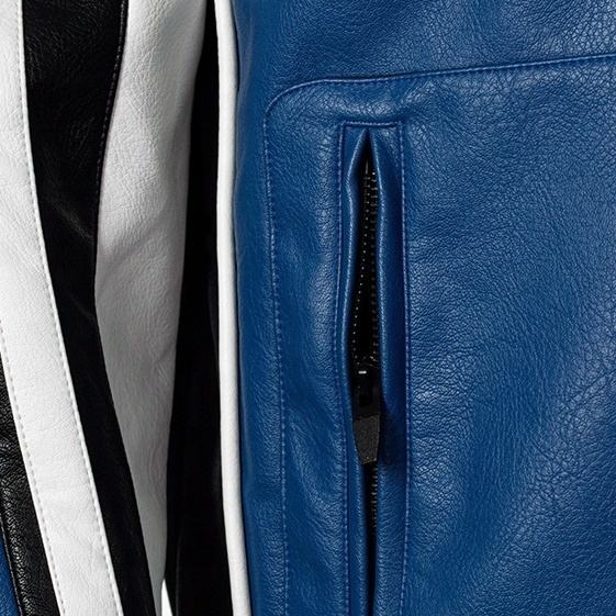 Chaqueta de Motociclista de Cuero Clásica Retro de los Modelos Más Populares, Chaqueta de Carreras de Cuero con Cierre de Cremallera para Hombre