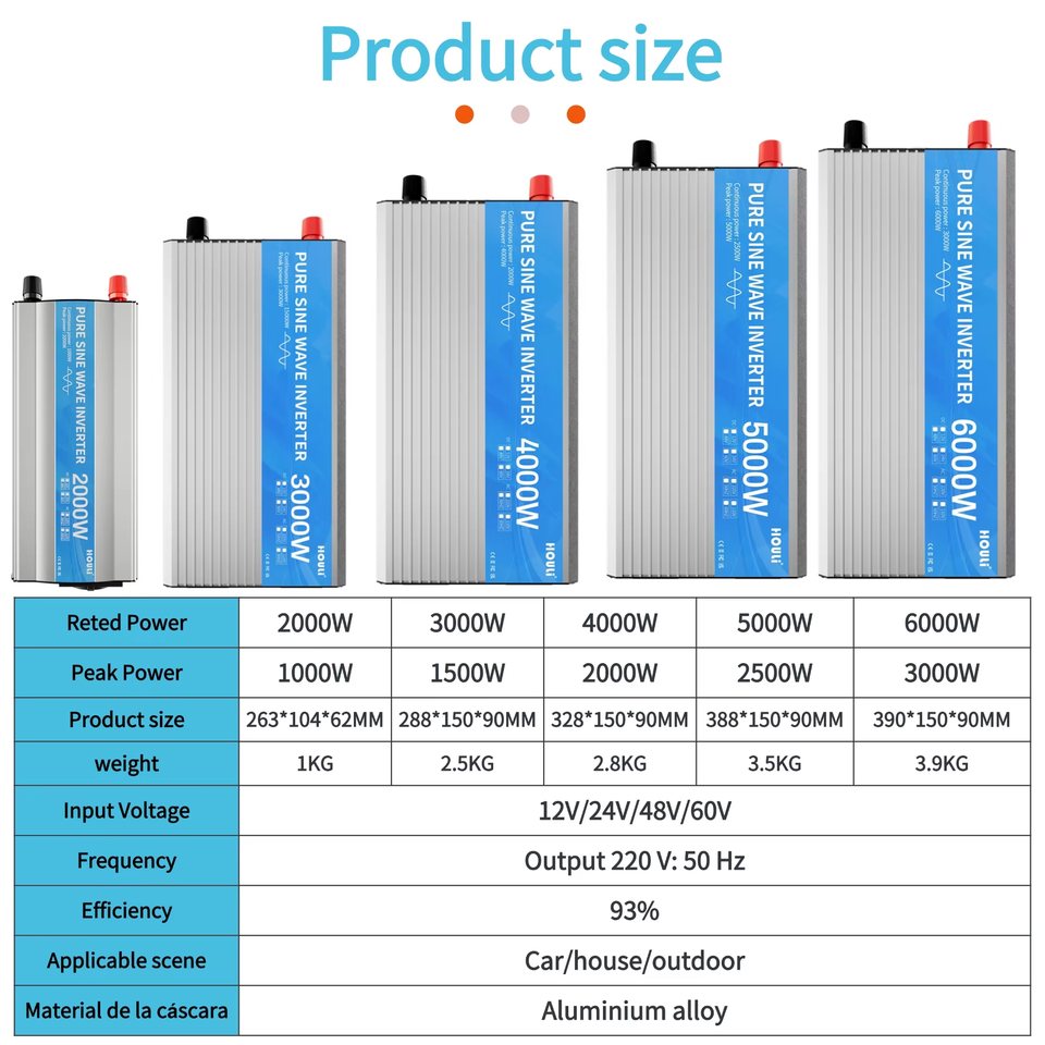 Inversores HouLi de 3000w, Inversor de Corriente de Onda Sinusoidal Pura para el Hogar, Inversor de CC a CA de 12V 24V 48V, 110V 220V