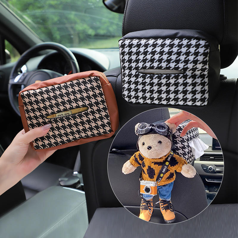 Houndstooth grano Universal PU cuero coche caja de pañuelosNombre del producto