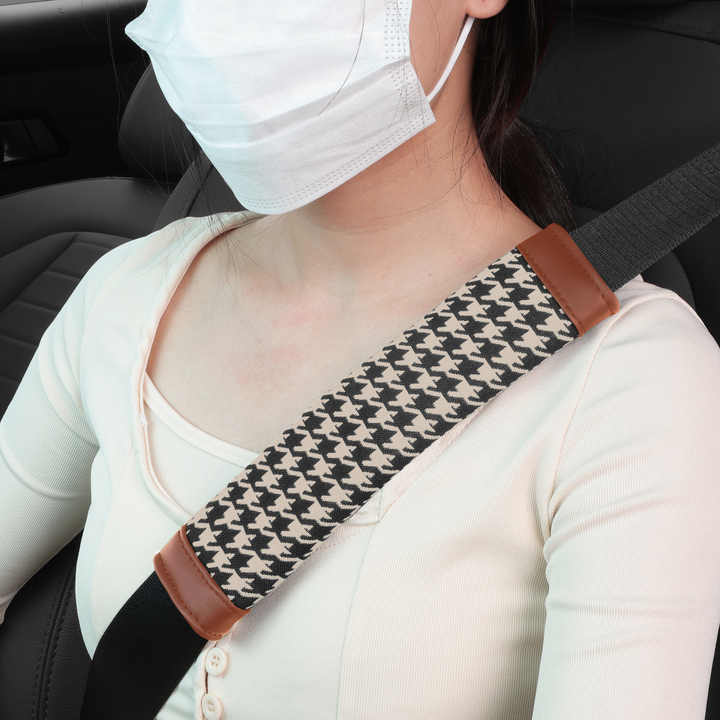 Funda para Cinturón de Seguridad de Coche con Patrón de Pata de Gallo, Almohadilla de Hombro de Cuero de Lujo Universal, Protector Multifuncional Universal para Todas las Estaciones