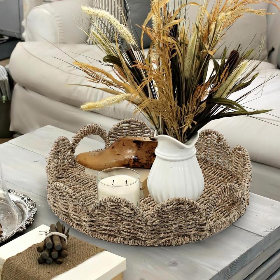Nombre del producto:Seagrass festoneado bandeja con asas hechas en Vietnam