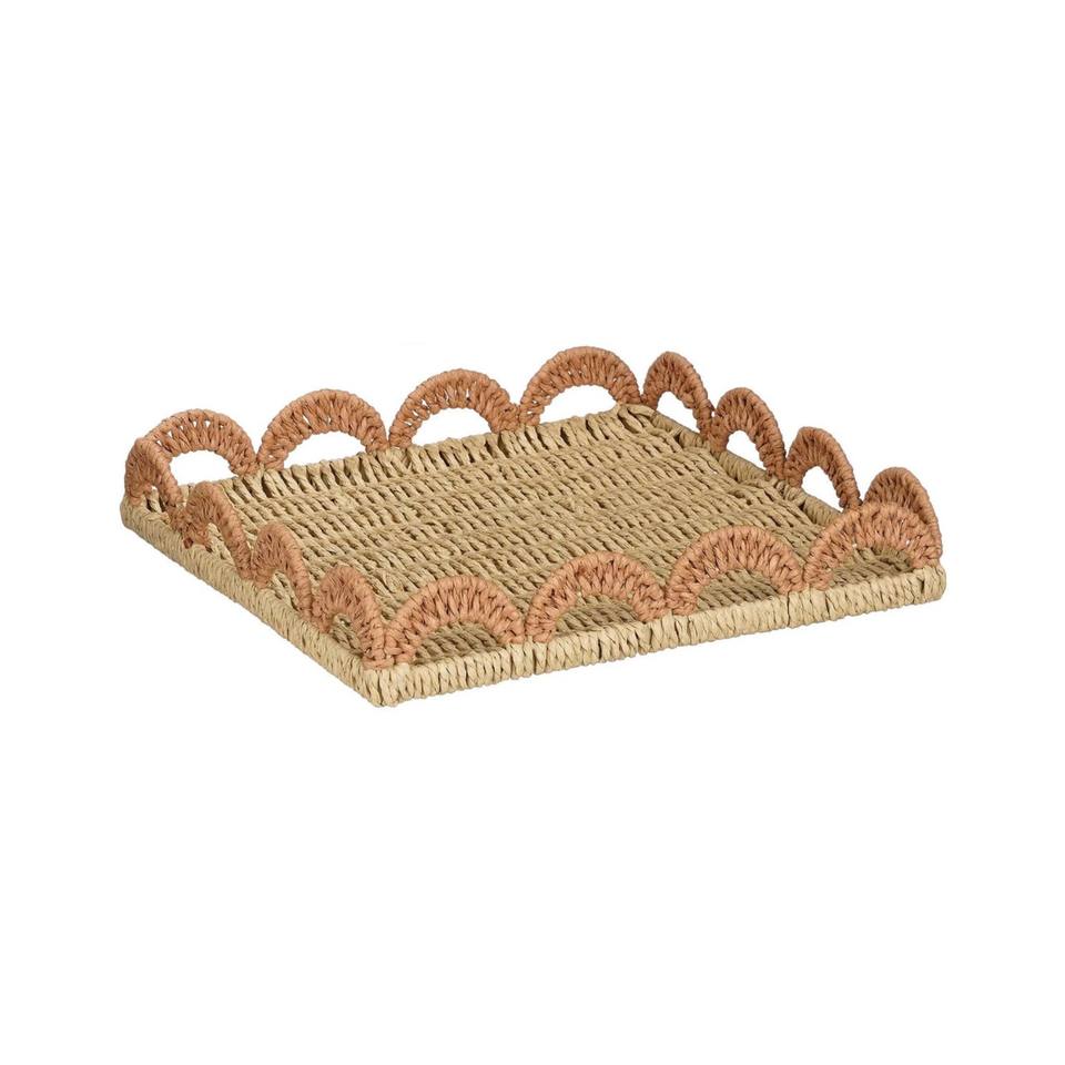Bandeja de Papel Trenzado con Borde Festoneado para el Hogar, Bandejas Tejidas Multifuncionales para Utensilios de Cocina, Hecho en Vietnam