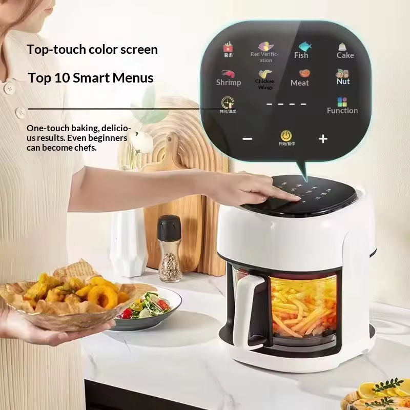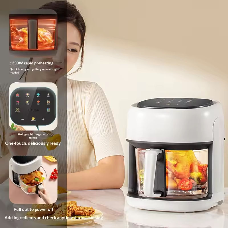 Freidora de Aire Eléctrica Inteligente Multifuncional de Gran Capacidad con Recipiente Interior Visible de Vidrio para el Hogar, Venta al por Mayor