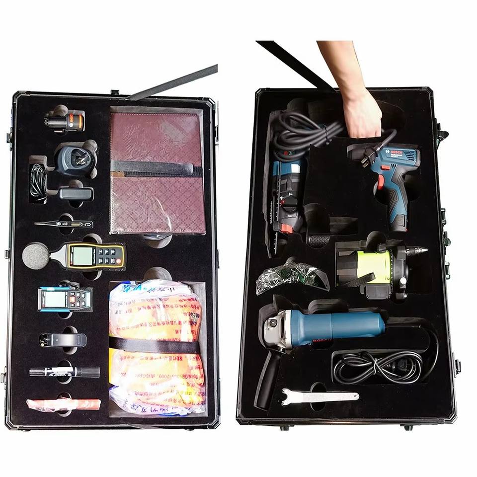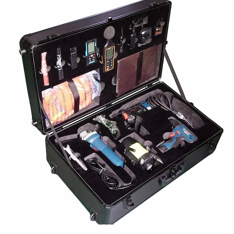 Caja de herramientas portátil de aluminio negro Barbero maletín vacío pequeño multifuncional para el hogar
