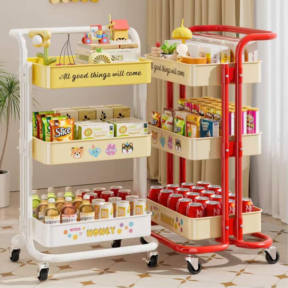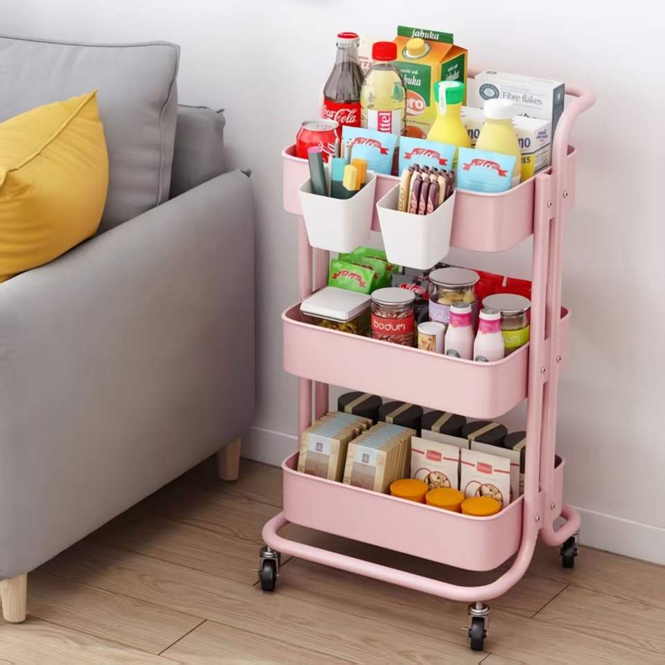 Carrito de Almacenamiento Giratorio Cuadrado de Tres Niveles para Cocina, Organizador de Verduras, Carro de Plástico y Hierro para Pinturas
