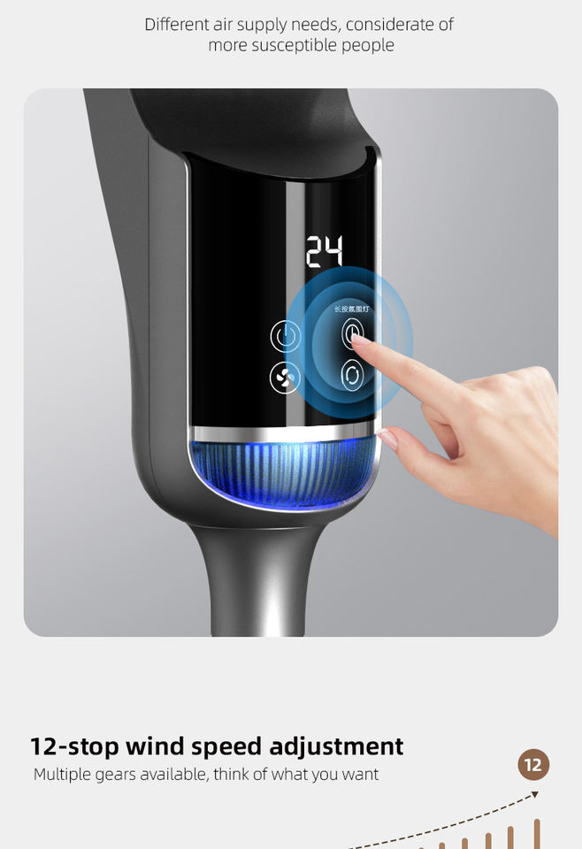 Ventilador de Circulación de Aire con Control Remoto por Voz, Ventilador de Piso Retráctil con Pantalla Táctil y Temporizador