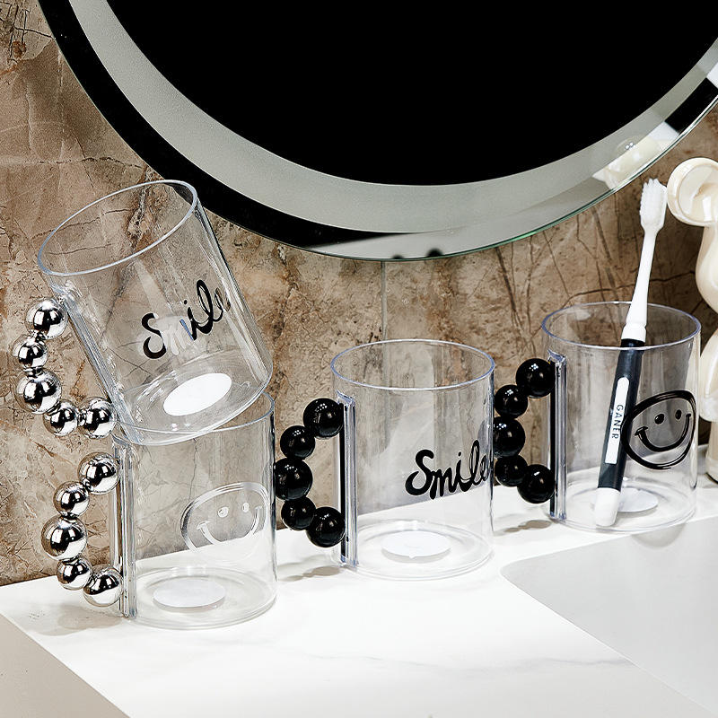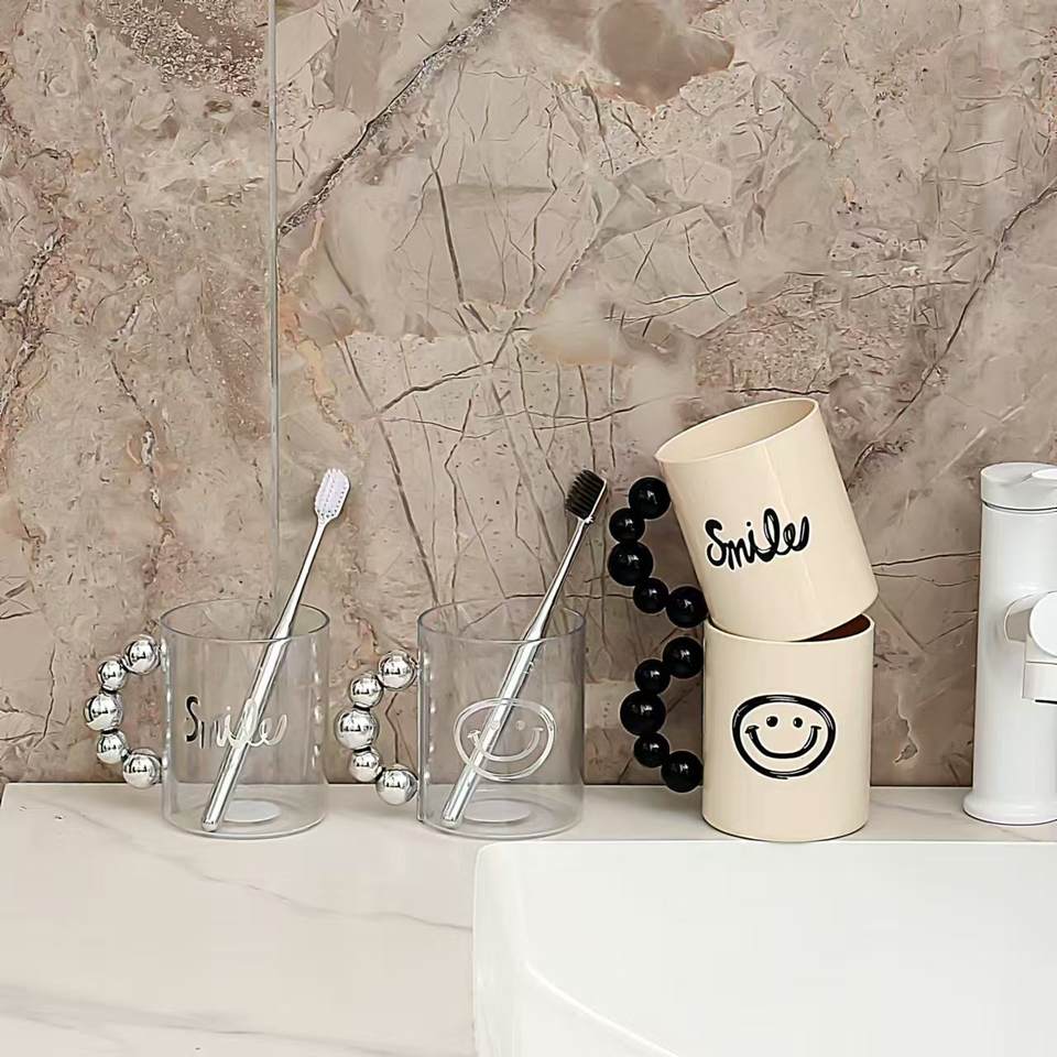 Taza de enjuague bucal con mango de perla desechable para el hogar con cara sonriente Taza de cepillo de plástico simple