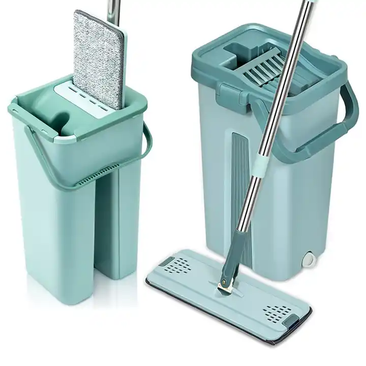 Juego de limpieza de tareas domésticas, con escurridor de cubo, fregona de piso plano residencial