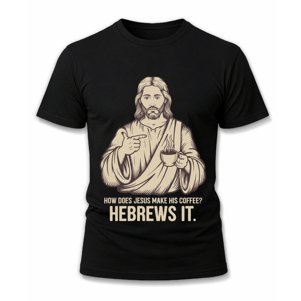 ¿Cómo prepara Jesús su café? Hebrews It! Camiseta divertida con estampado de Jesús, 100% algodón, camisetas cristianas ecológicas para hombre