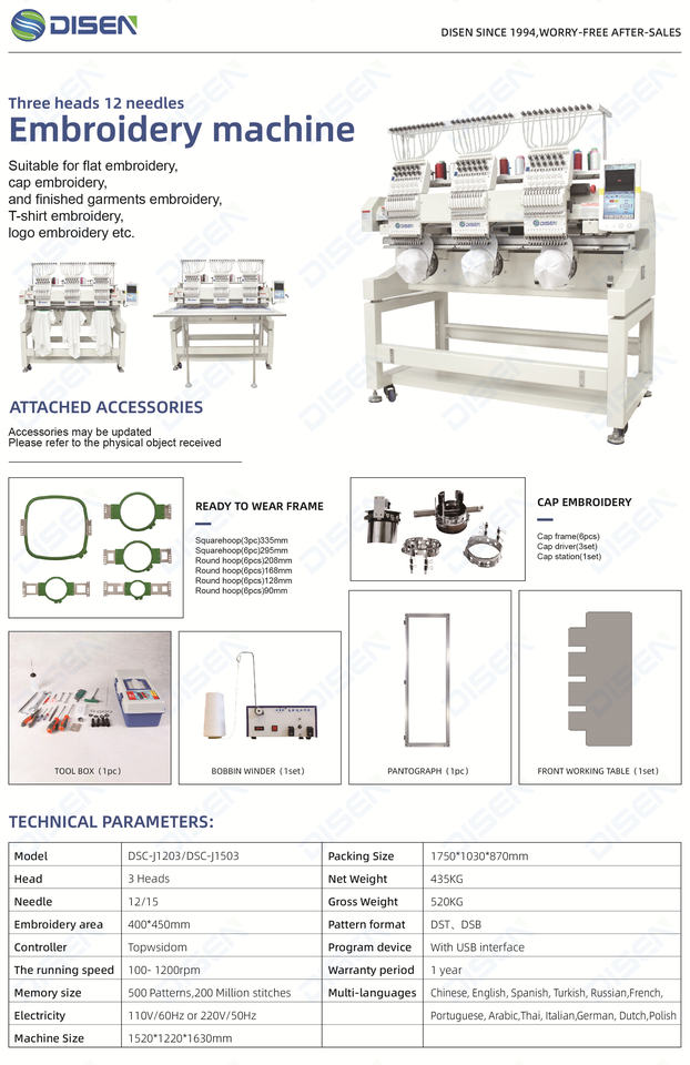 ¿Cuánto cuesta una máquina de bordar de 3 cabezales en China? Máquinas de bordar y coser OEM computarizadas para suéteres, gorras y camisetas de sobremesa.