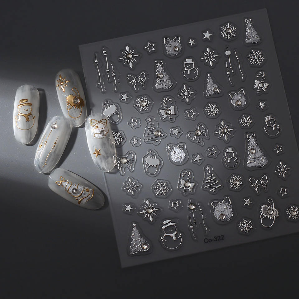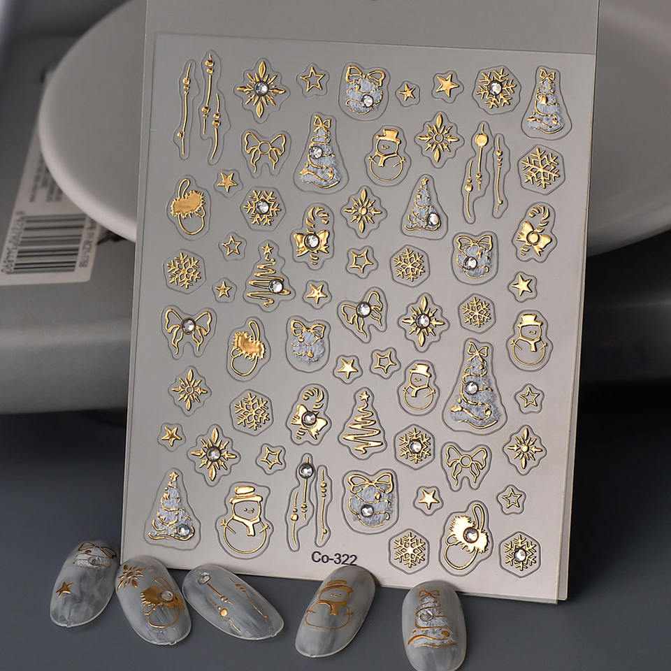 Cómo vender 3D Árbol de Navidad Copo de nieve Muñeco de nieve Nail Art Stickers Bow Star Design Gold Silver Nail Decals Wholesale