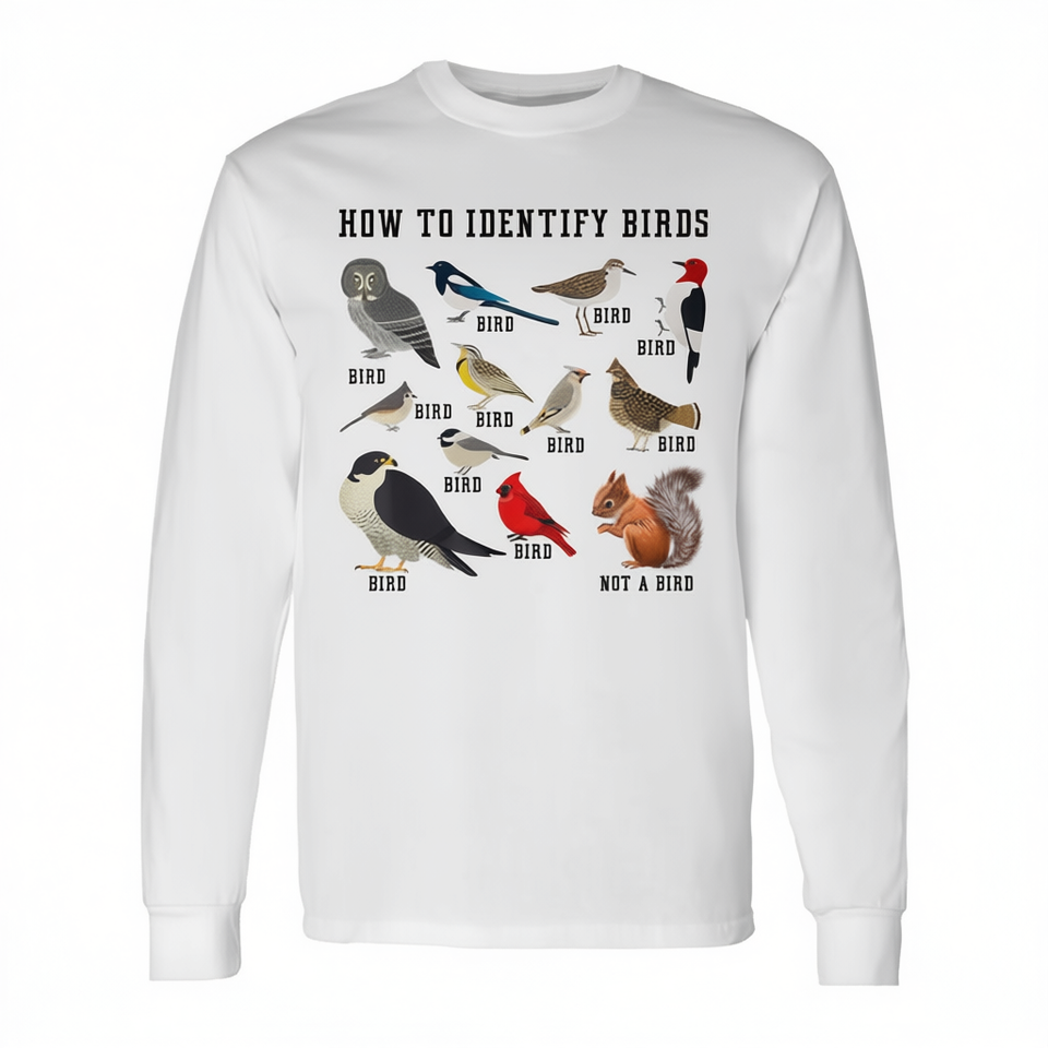 Cómo identificar las aves, camiseta de manga larga para observadores de aves, diseño para amantes de la naturaleza
