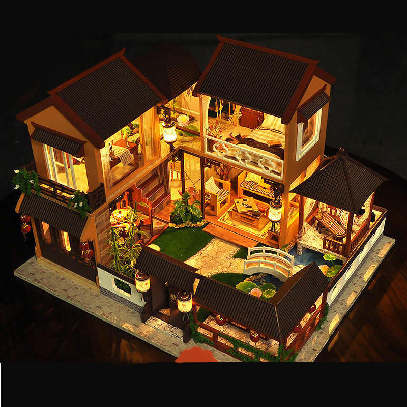 Hoye Craft caja de música personalizada casa modelo ensamblado casa de muñecas