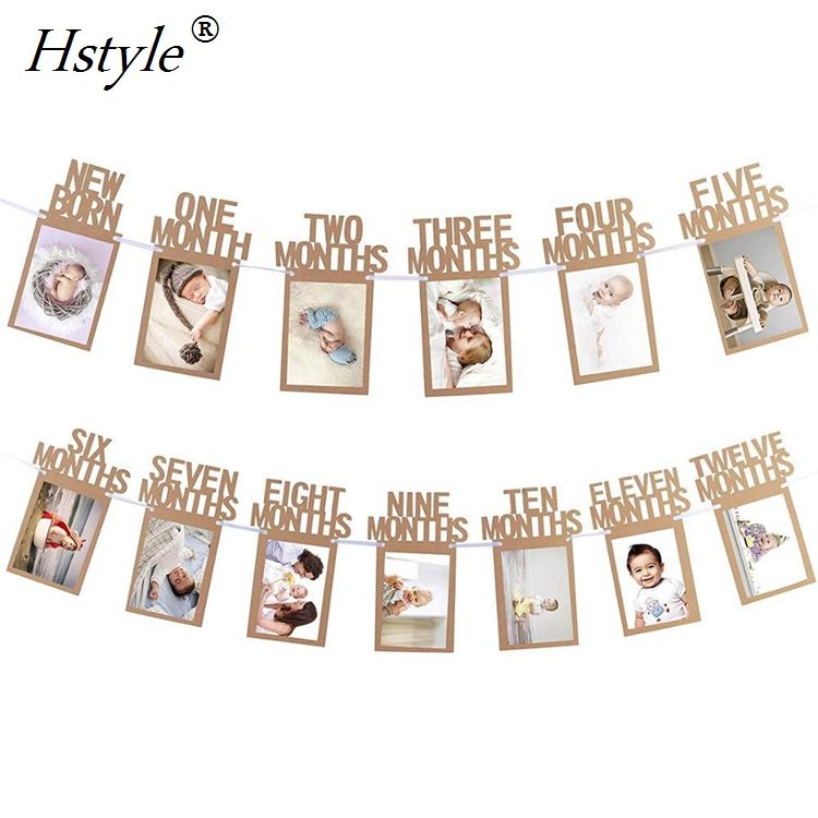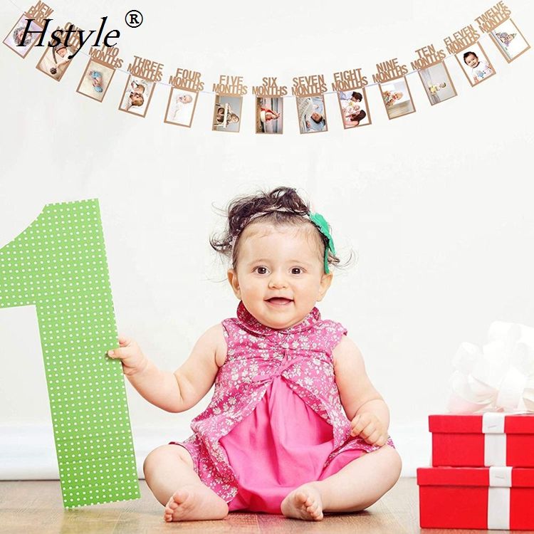 Nombre:1er cumpleaños Bunting Garland 12 meses foto Banner Baby Shower regalo