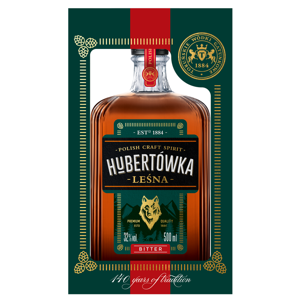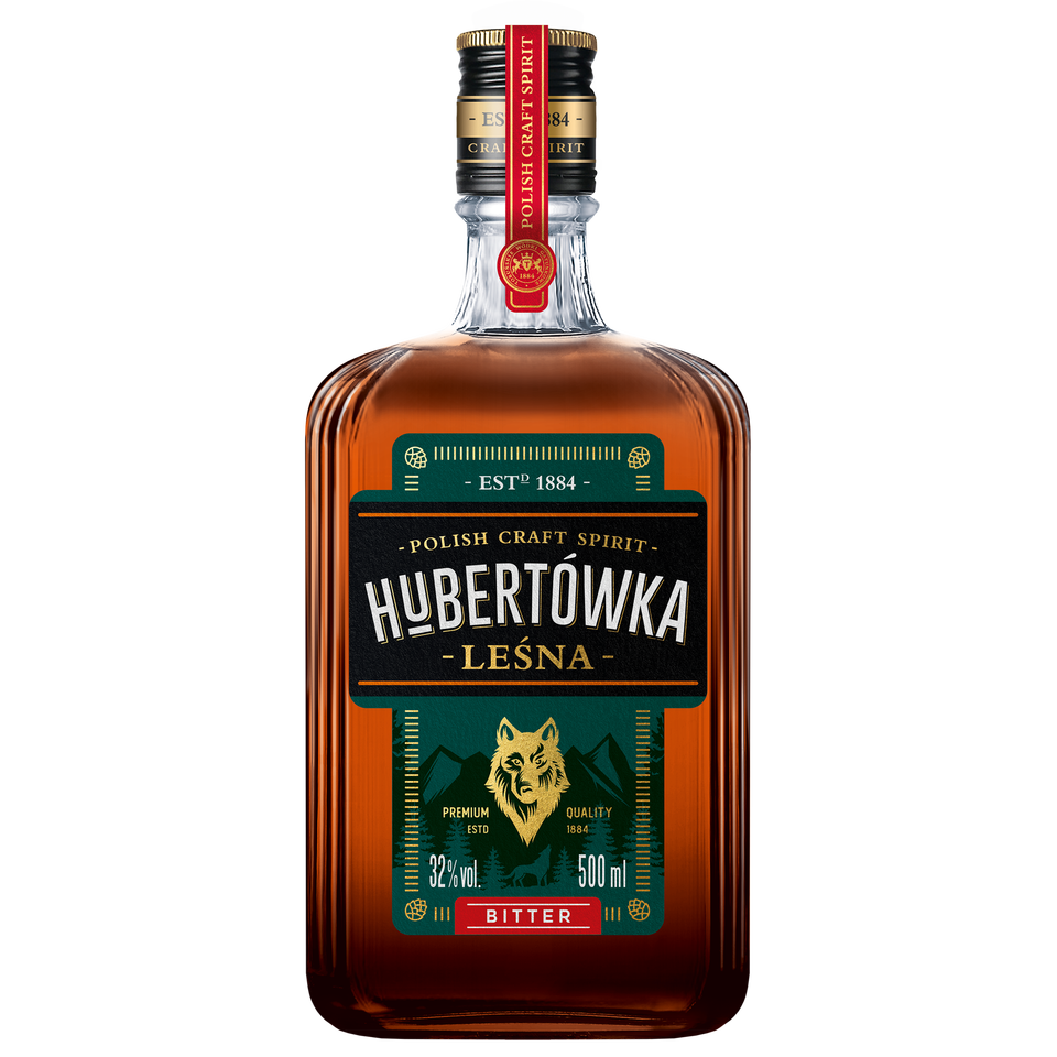 Liqueur Hubertówka Bitter Herbs 32% 500ml, sabor herbal con un agradable amargor, productor europeo, productor polaco, b2b