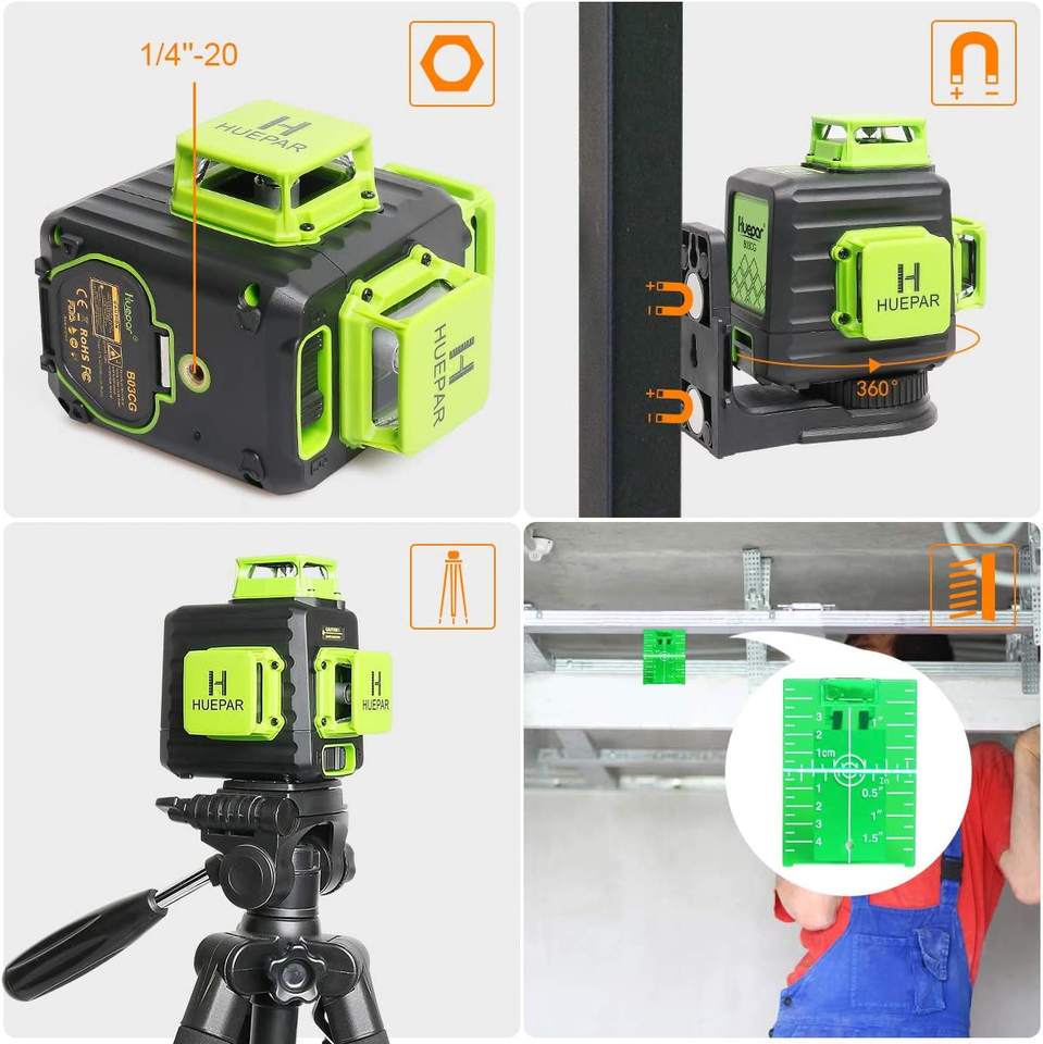 Distancia de trabajo (línea):130Ft (100 LUX), 200Ft con receptor Huepar LR-5RG/LR-6RG