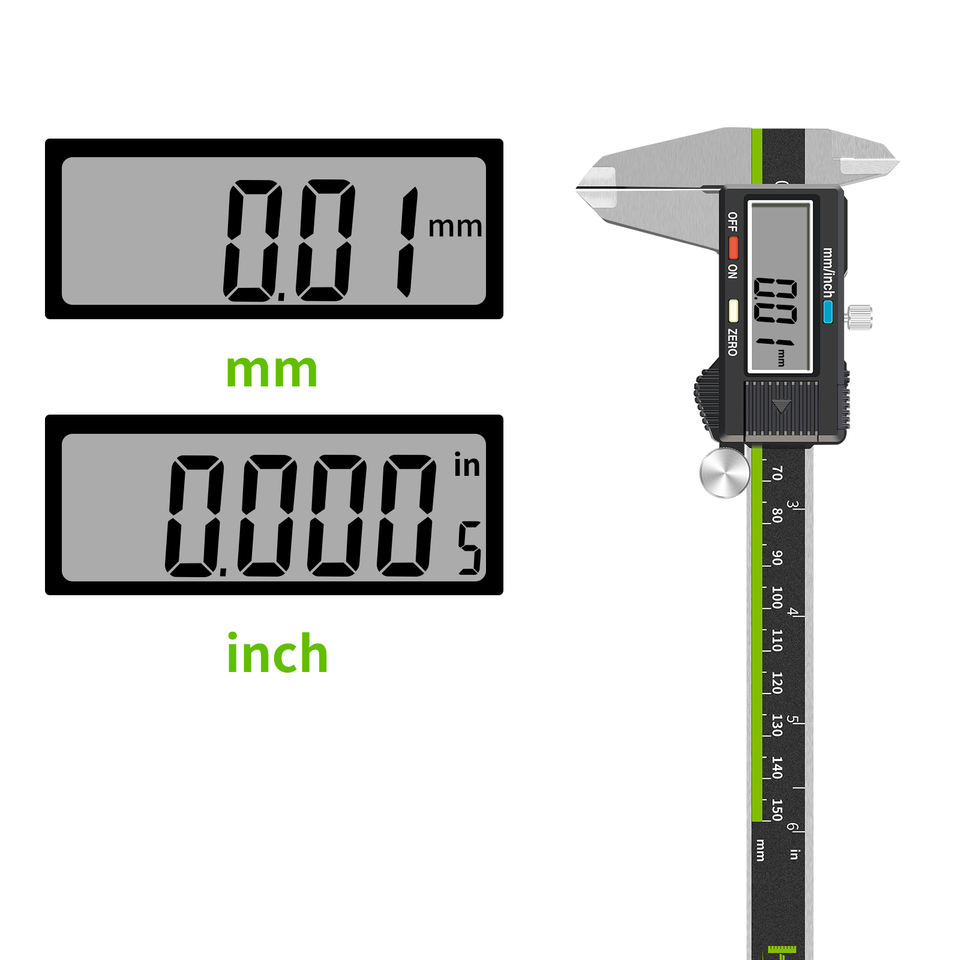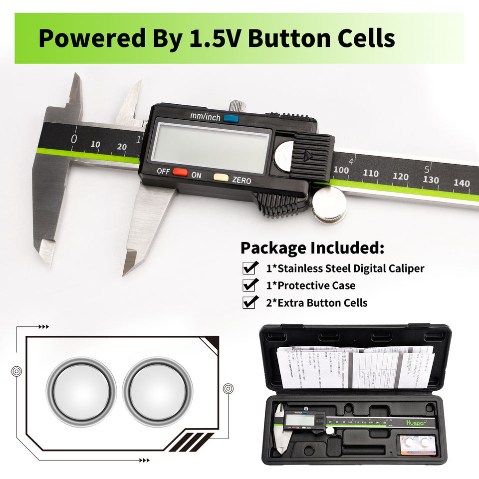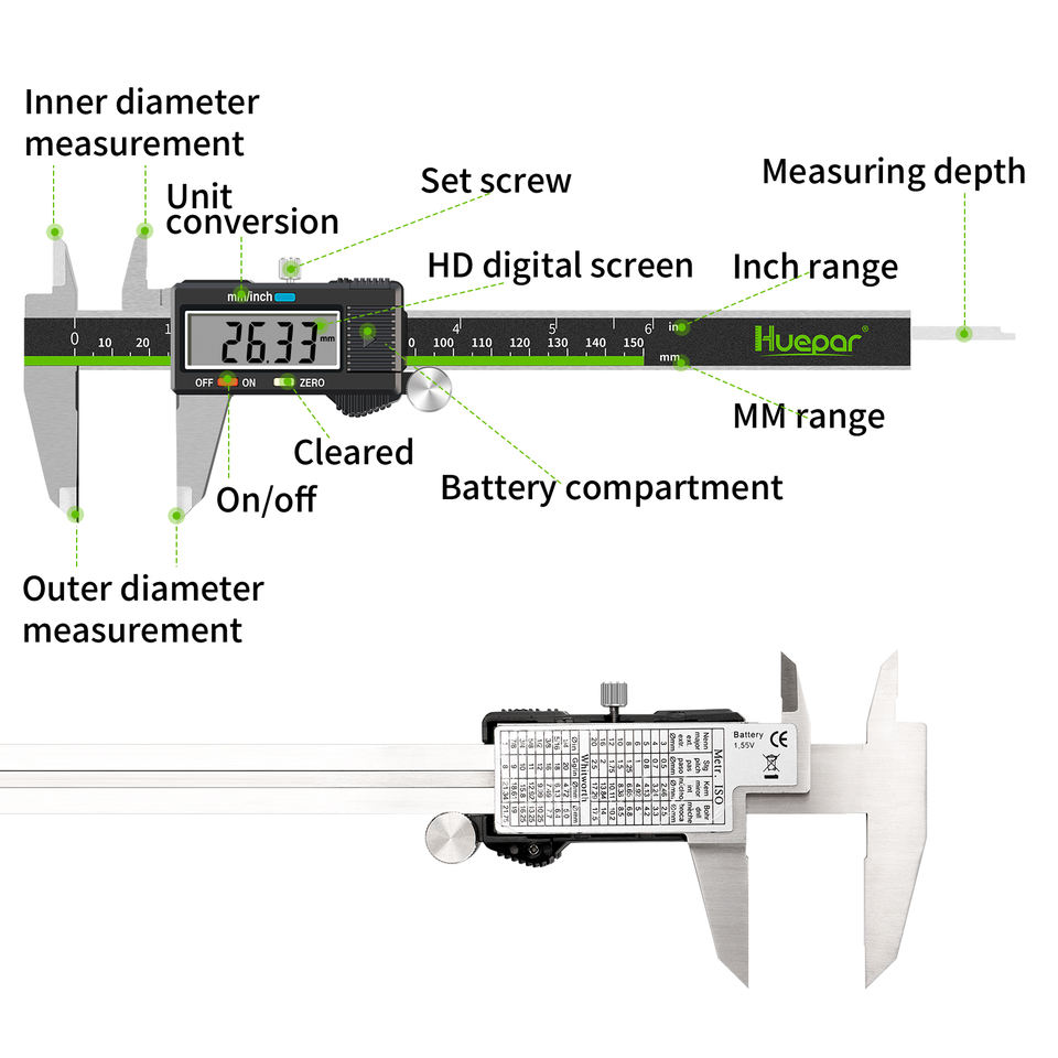 Huepar-Regla electrónica de acero inoxidable DC15, 6 pulgadas, 150mm, calibrador Vernier Digital, pantalla HD