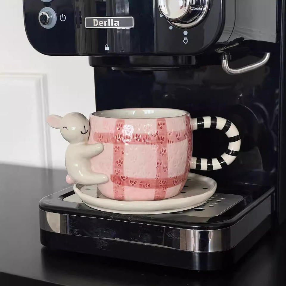 Hug Koala 3D cerámica pintada a mano juego de tazas de café taza Linda japonesa con platillo taza de té de la tarde para niños
