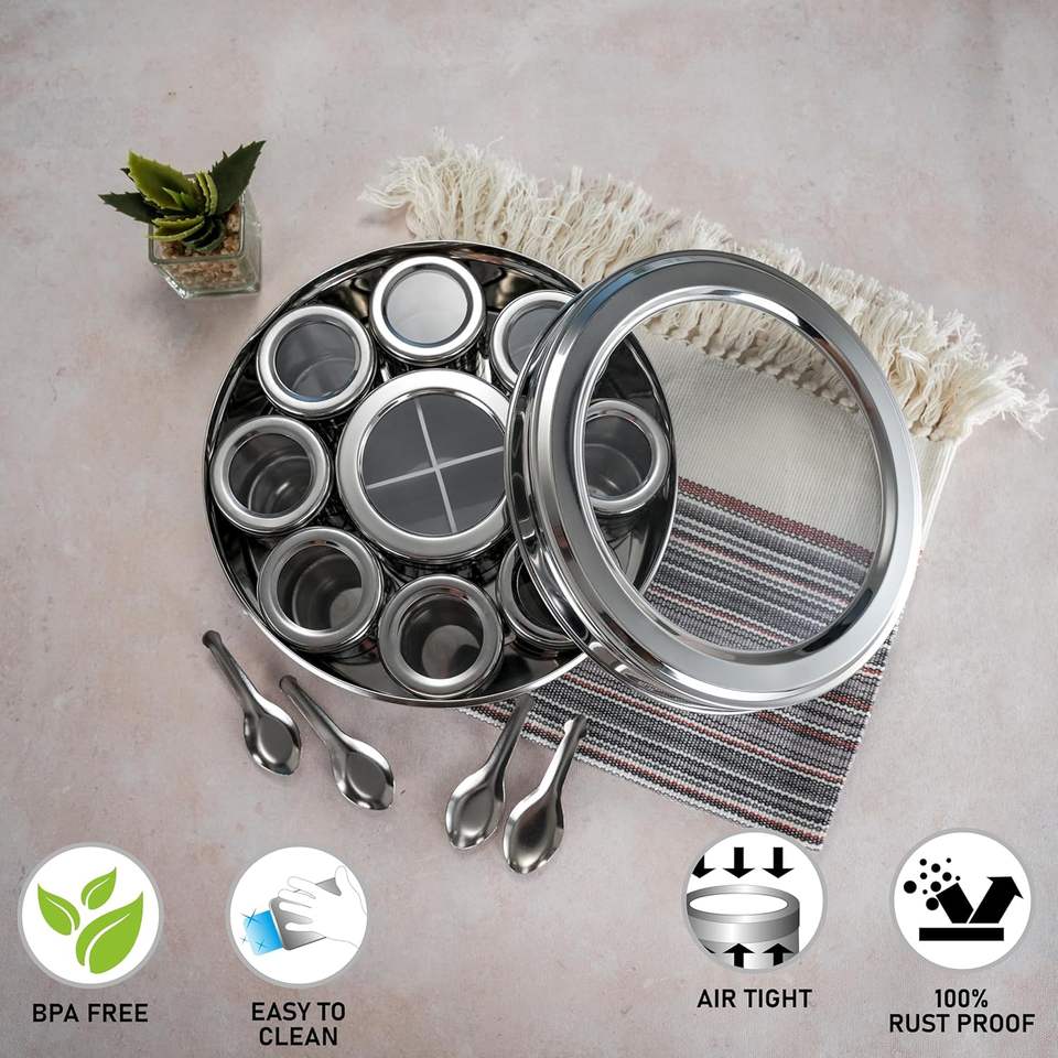 Descripción:Contenedor de especias de acero inoxidable indio Masala Dabba