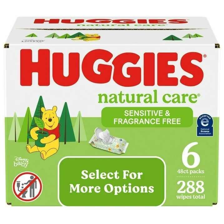 Huggies Natural Care Sensitive Baby Wipes, sin perfume, paquete de 6, 288 Total Ct